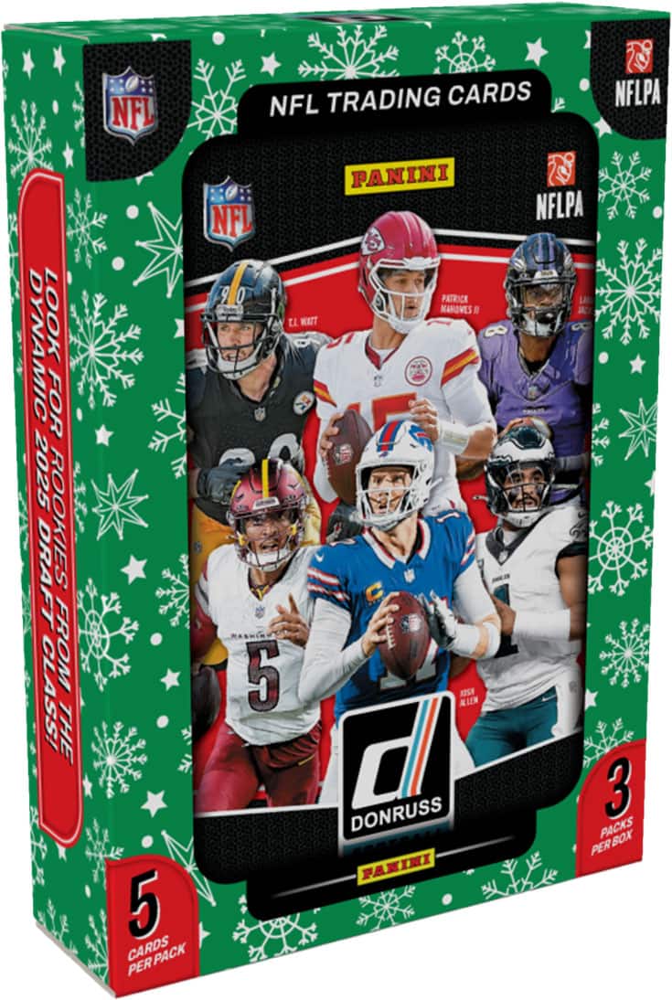 This is my fourth time purchasing 5 tins of 2025 holiday donruss football tins and I’ve been very happy with the product. I’ve had great luck pulling rookies such as Dart, Travis Hunter, Cam Ward cards and even one Lamar Jackson Downtown. The only complaint I have is what seem to be a common problem with theses tins is that the corners on the cards are sometimes damaged. So I encourage Panini to create a better way to protect them as my downtown was a victim of this unfortunately. Besides that, very good product, decent pulls and super fun to Rip. I highly recommend to any collectors, enthusiasts or persons looking for a fun rip with a higher probability of hitting decent rookie cards.