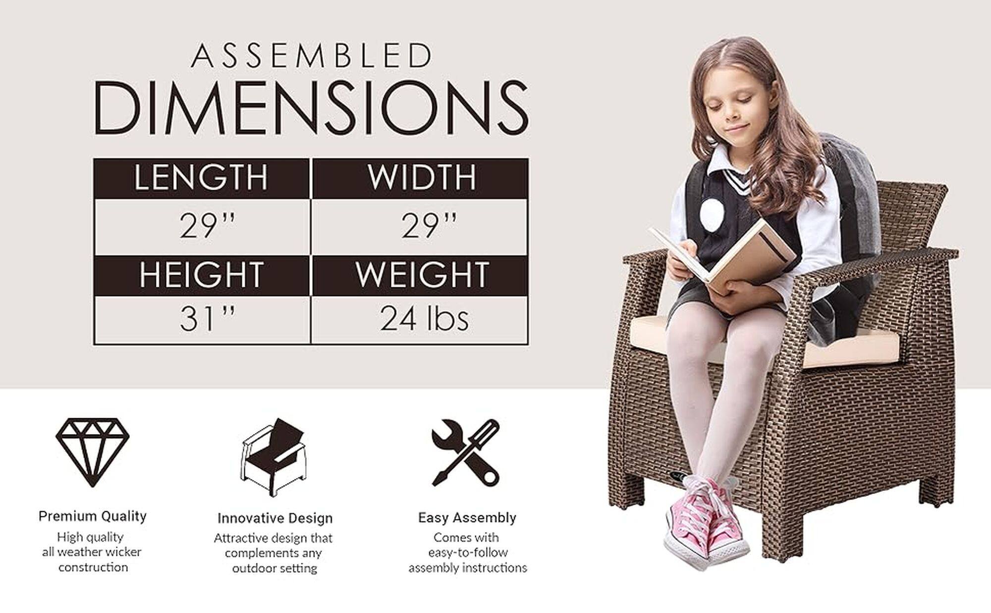 I am taking a break from assembly the second of these chairs, to write this review. This might be the worst assembly process I've ever encountered (and I've had a few doozies from Ikea). Hardware was difficult to line up, some of the metal brackets required bending to align properly, and the way they have the bolts/brackets spaced make it difficult to use the provided wrench. Purchase at your own frustration risk.