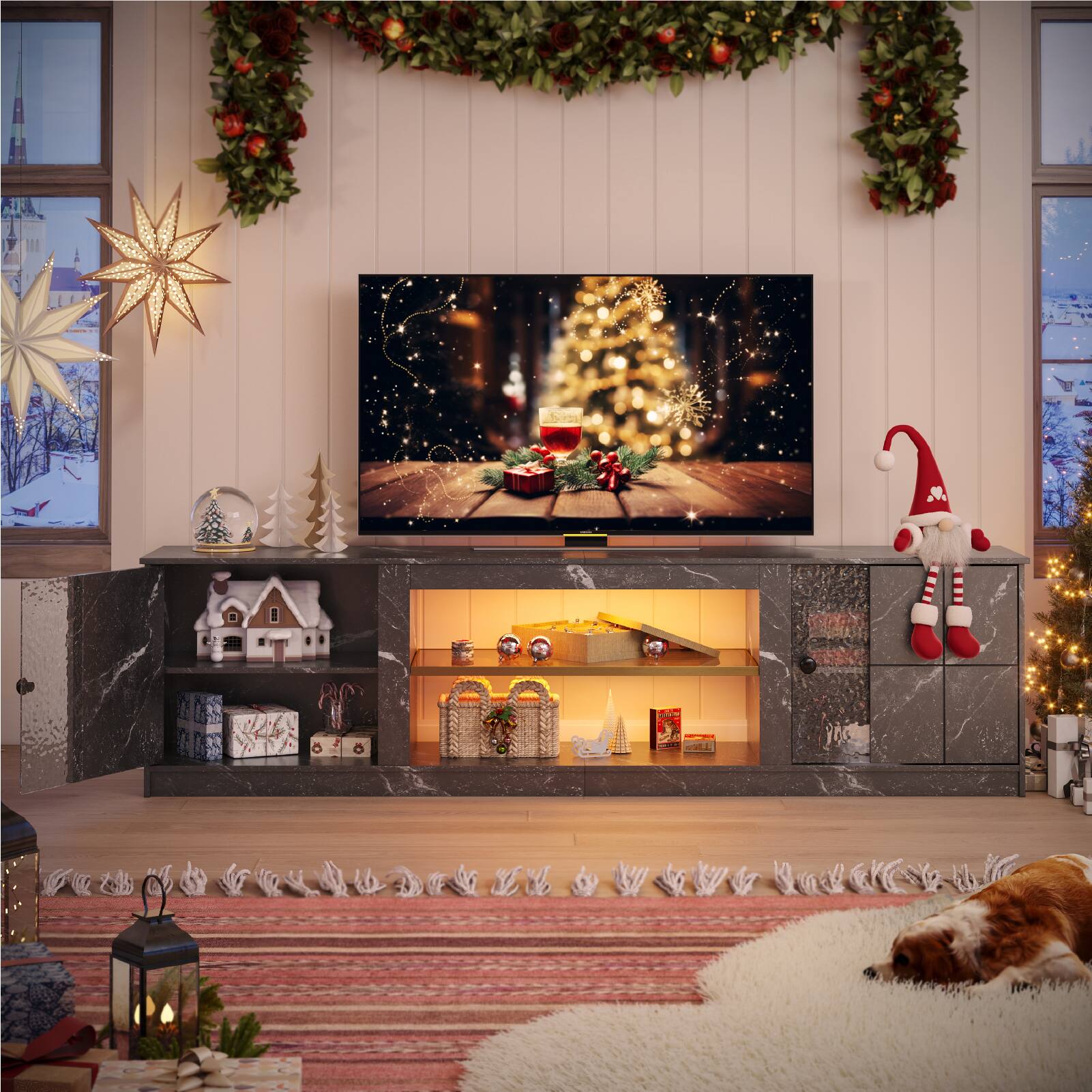 Pinmoco - 70 inch TV Stand for Up To 80 inches TV