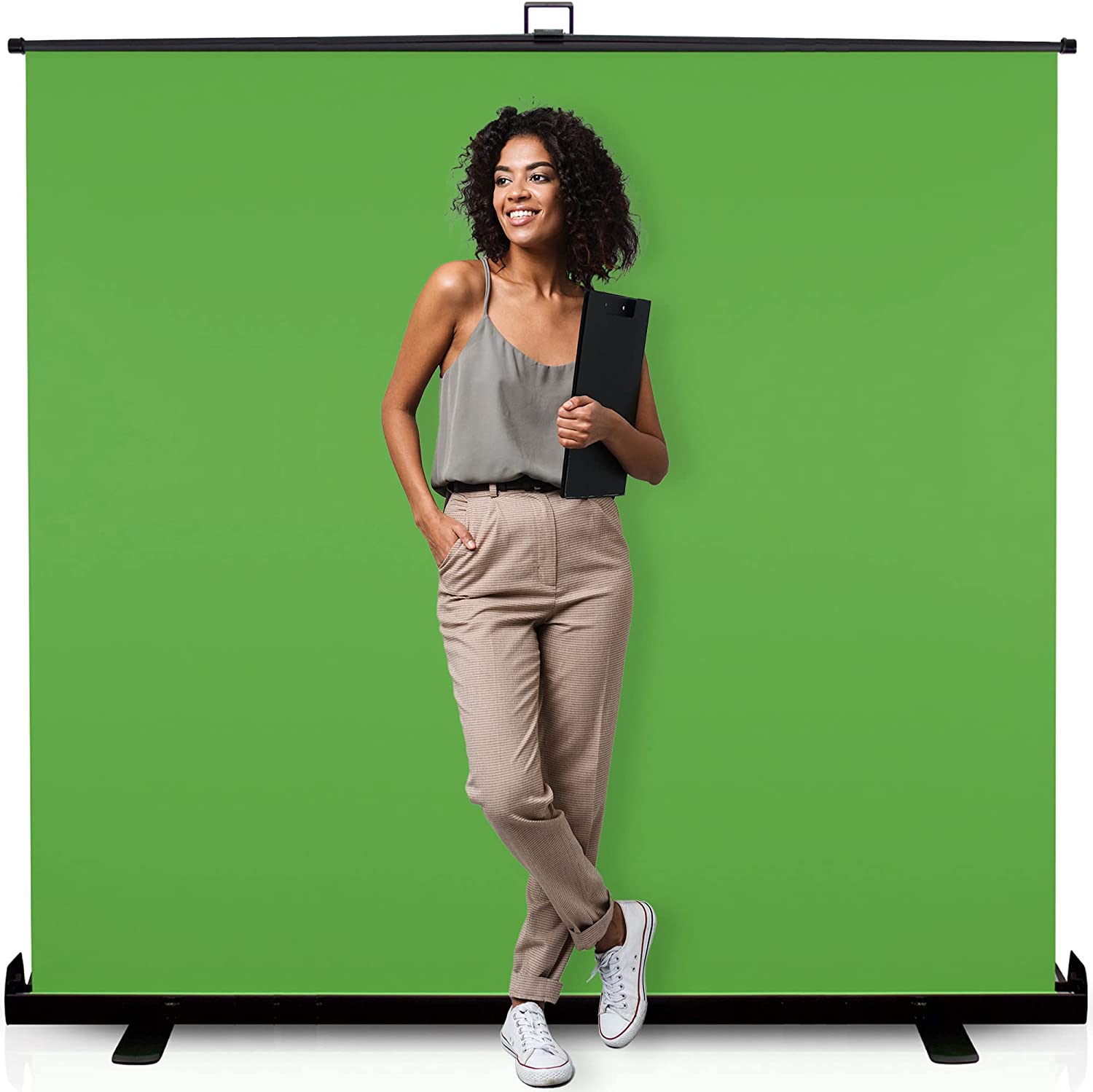 This folds up so easily so it can go anywhere any time. It's nice that it comes with its own little carrying case to pack it around with me while yaking photos. Having the silver and the white side is great! And very great quality!