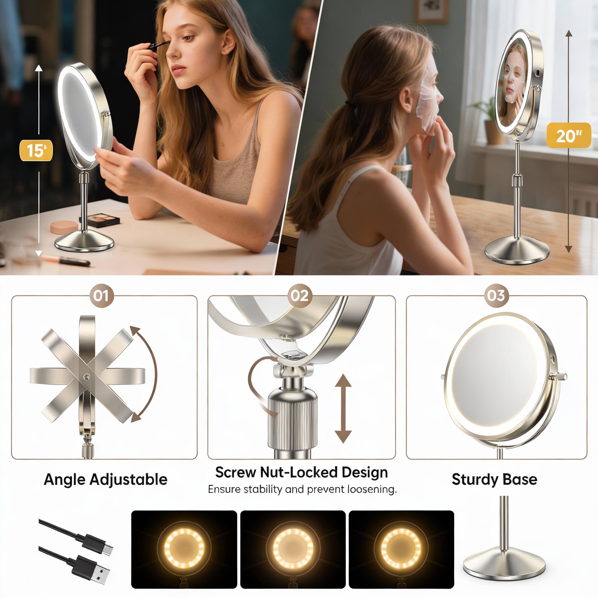 With three kids, I rarely have the luxury of sitting at a vanity. This mirror has been a game changer because it’s truly portable. Whether I’m finishing my makeup in the carpool lane or in a different room while keeping an eye on the kids, I can take it anywhere. The fact that it’s rechargeable means I’m not hunting for an outlet. Highly recommend for anyone who has to be 'anywhere at any time!'