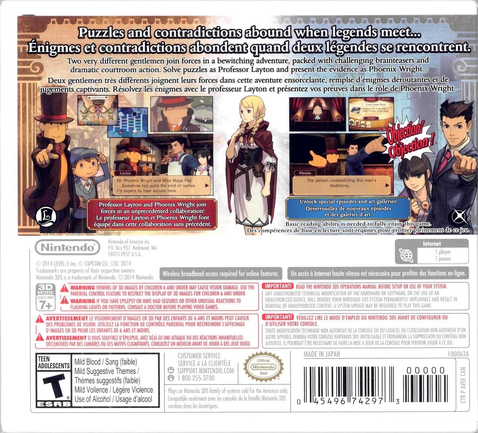 Before playing this game I was completely unfamiliar with the Professor Layton series and how it played. But I figured since this game was on sale at my store at least it will have Phoenix Wright sections in it which I am a fan of. I will say after playing the Layton sections that are find its and puzzles I am easily a fan of Layton games now and will buy any in the future. Not to mention the story which completely shocked and surprised me from beginning to end with some parts being hilarious and other parts being tragic. I am beyond happy I took a chance on this little 3DS gem and if you can get it I highly advise you to. Both series are fantastic puzzle/find it/who done it games in their own respects and this game is certainly no different.