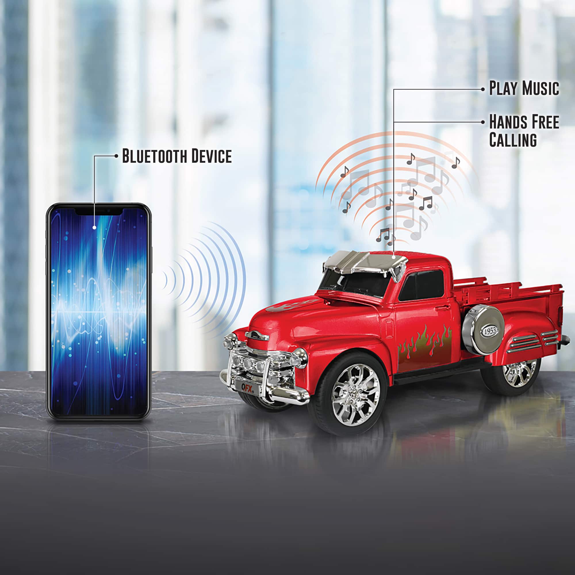 I had been looking for a Bluetooth small speaker for my office and I came across this interesting speaker. It’s very cool, the head lights light up and engine revs up when you turn it on. The sound is pretty descent. I am satisfied with my purchase.