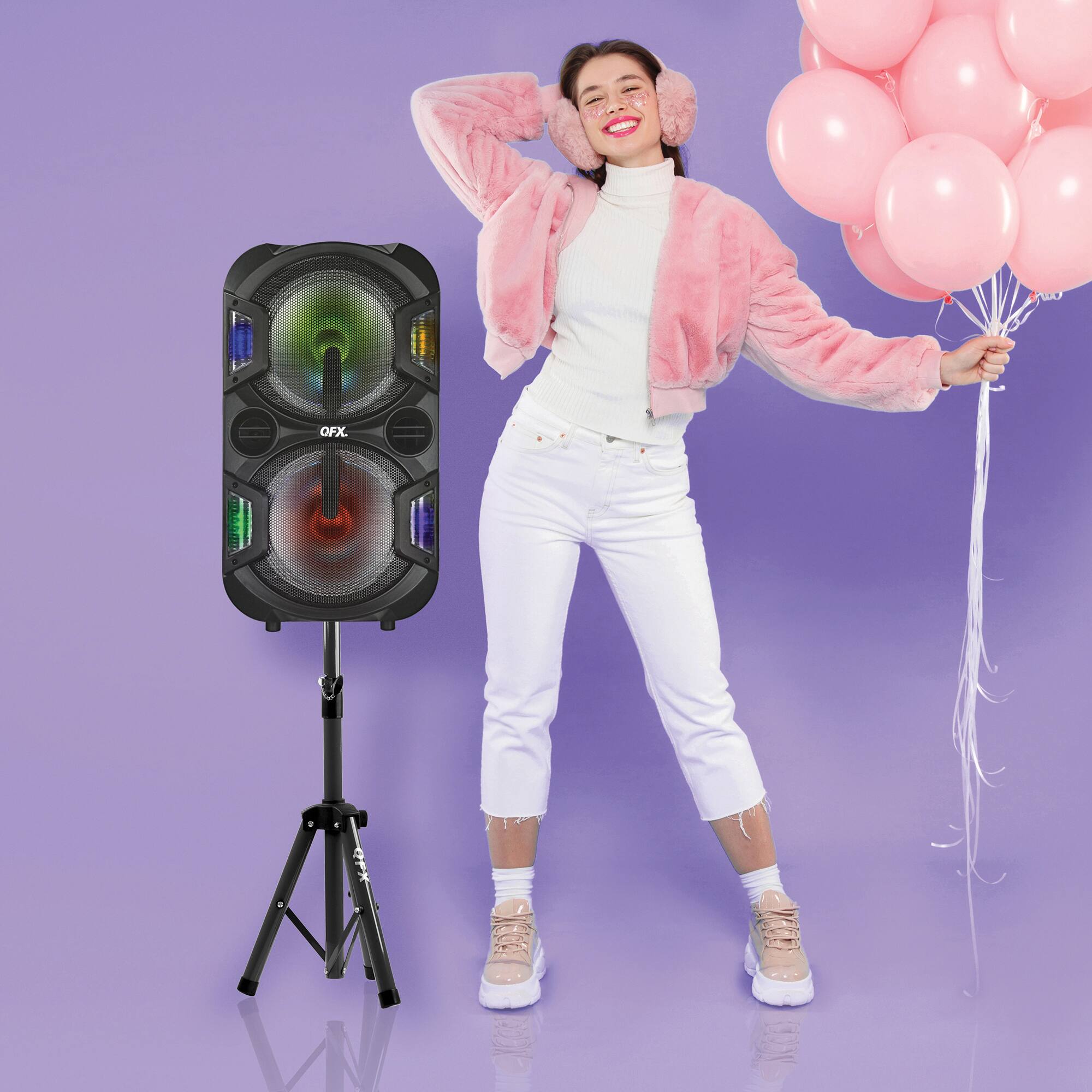 The JBL Partybox 310, weighing 38.4 pounds, is supported by the sturdy construction of the QFX stand without any issues. However, one drawback is that the speaker does not fit tightly and can actually spin when pushed by hand. The reason for the four-star review is that I have not yet tested it in outdoor conditions. I plan to use this stand to DJ my son's Club Baseball games, and depending on the field's terrain, I may encounter difficulties if the ground is uneven or consists of rocks and dirt. I will provide an update as soon as I have used