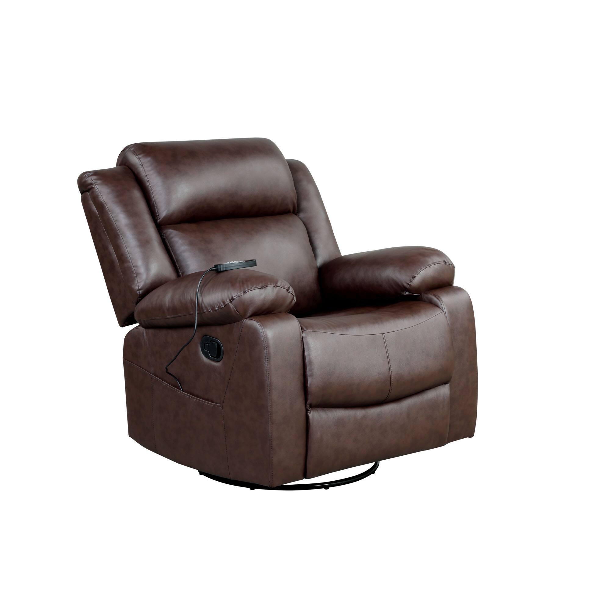 We bought two recliners for company to sit in. Our expectations were not high due to the low price. But this is shocking. The chairs don't swivel, you can't feel the massager, they are lopsided, and you cannot push the (manual) footrest down! They didn't even screw the chair to the frame on one whole side!!! The fake leather feels pretty nice; however, you sit in it lopsided. Their customer service person gave me a phone # to call of a company that does not exist. And of course I couldn't upload the photos. Why am I not surprised. Didn't think BestBuy would do that poorly. Let's see if this review even gets posted.