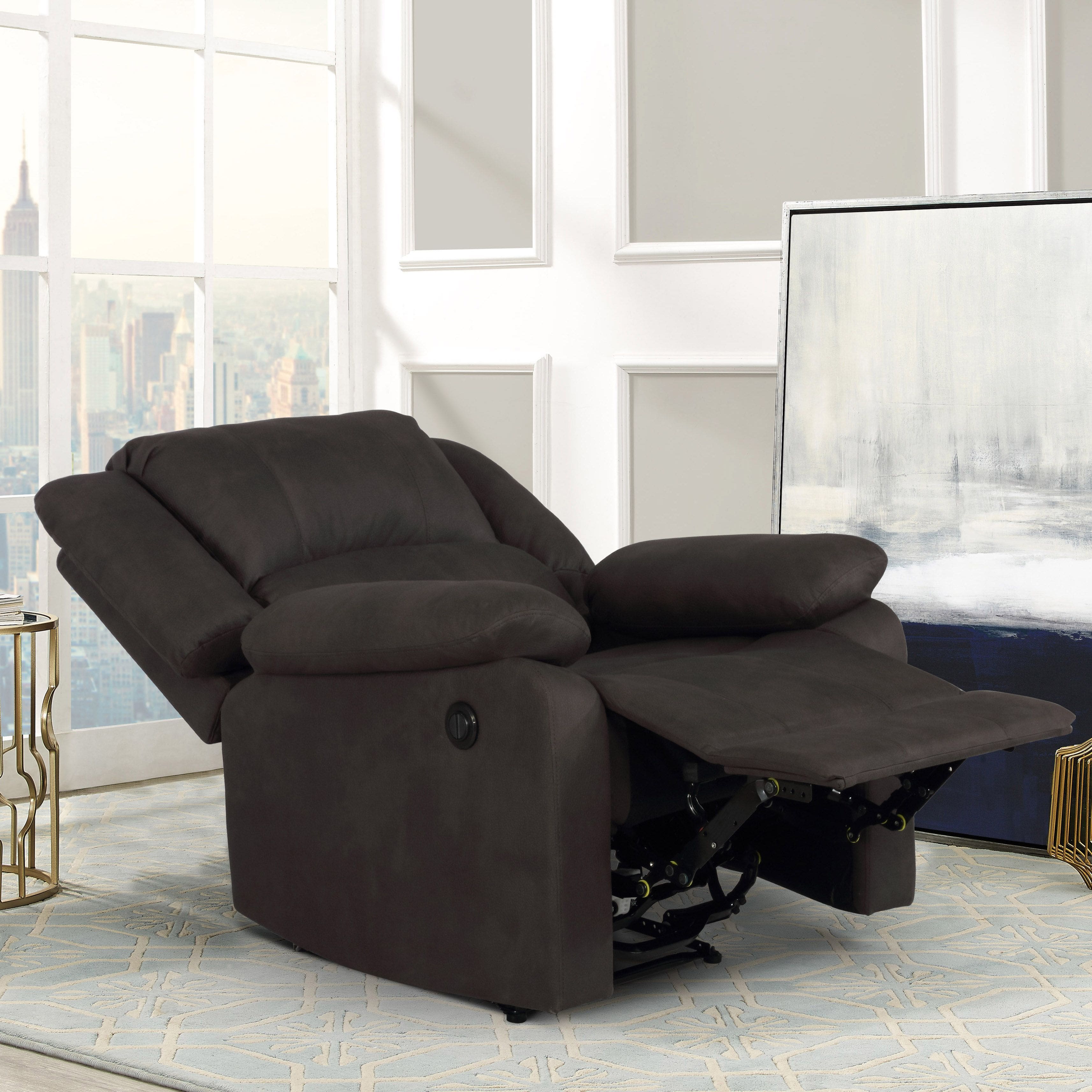 Extremely comfortable and very nice to have a power recliner that goes all the way back, the fabric material is so soft and resembles a leather look, very pleased with purchase and easy to put together