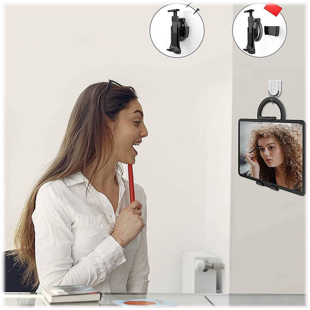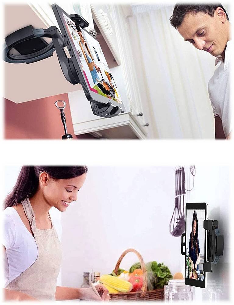 This is a really l nice dual purpose holder. I really like how I can use it with both my cellphone and iPad. It is so easy to use and very sturdy. It is also adjustable but very limited in height. I also like that it comes with the capabilities of being able to adhere it to different surfaces. This is great for me when I’m trying to do hands free photo, and using it for recipes while cooking.
