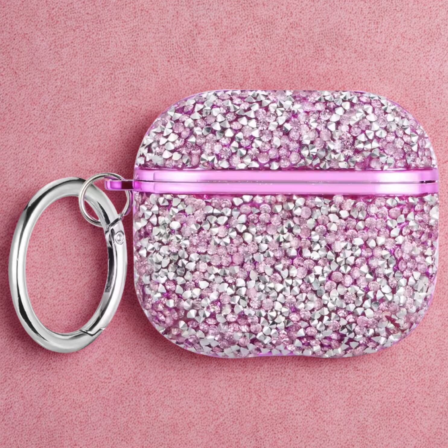 The Glam is Awesome, but the quality is lacking. This case was a birthday present and didn't even last a month. The rhinestones fell out closest to the top opening and the bottom by the charge opening. The top of the case does not secure, as I have found it open several times. Luckily the air pods didn't fall out. It does not get abused as it was cared for and placed in a purse and or left on a stand to charge. Great idea, but not very secure. Not to mention some of the stones are dark colored and not all clear.