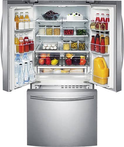 This is the most energy-efficient French-door refrigerator on the market today. I was surprised to learn it isn't energy-star qualified; however, since several Samsung refrigerators received their energy-star ratings in the last three months, it's possible this refrigerator is in the process of being approved. While this model is among the smallest French-door refrigerators available today, it's easily twice the size of my parent's refrigerator, which fed 8 people. However at 18 cubic feet it is only recommended for a family of three! It's plenty large enough for my current needs, but a family of four or more might want the convenience and additional storage of a larger refrigerator.
