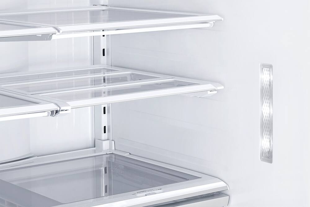 This refrigerator rocks it! Best interior illumination of any I've seen. Shelves are just deep enough to hold a broad assortment of cold items without losing "back of the shelf stuff" that ages out unseen. Rock solid, sturdy doors, short swing radius. Double layered door for quick access to small items is handy. Bottom freezer section is deep and spacious with well thought-out drawers and dividers. Unit is stone silent, and looks classy with quality lights, handles, hinges and latches. There's a lot more to this unit than the price would suggest.