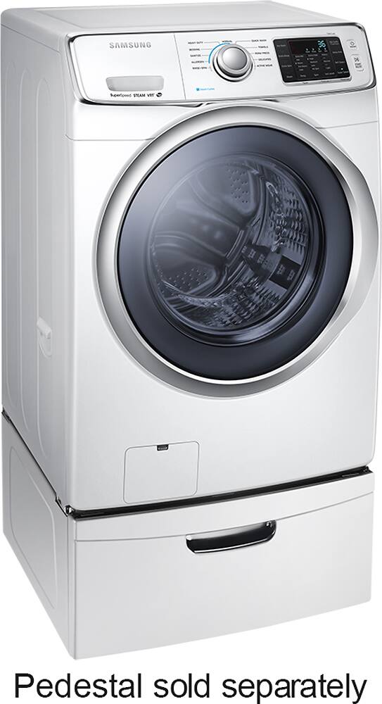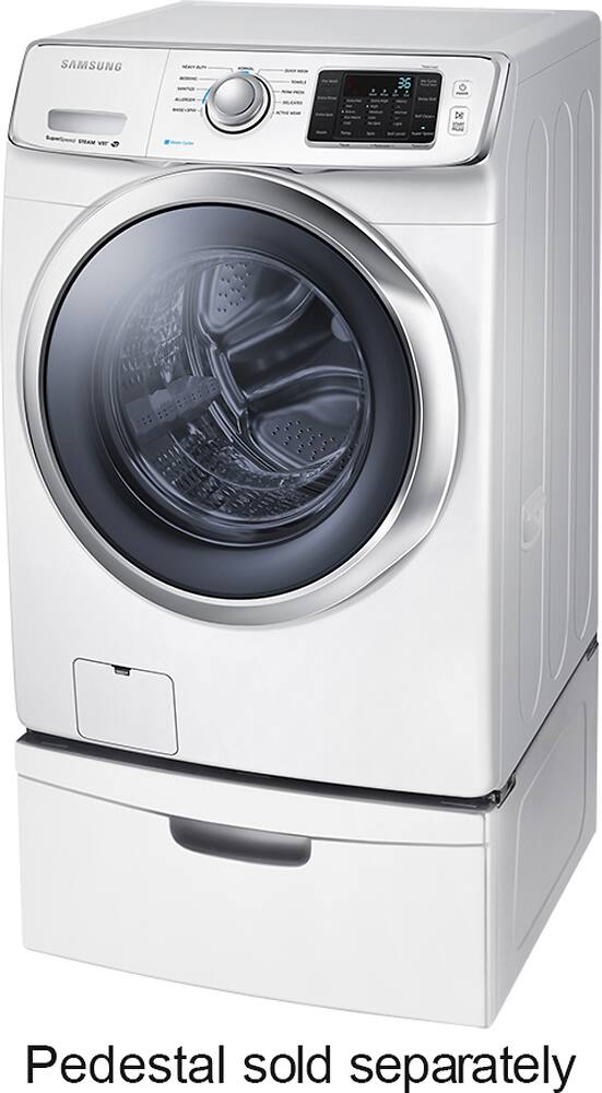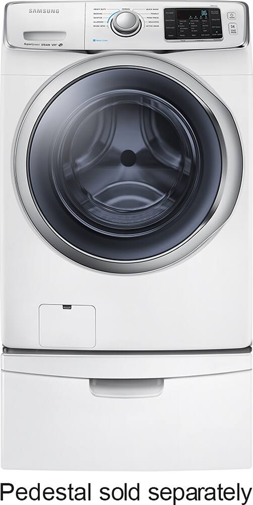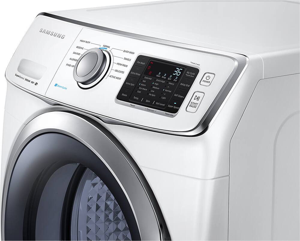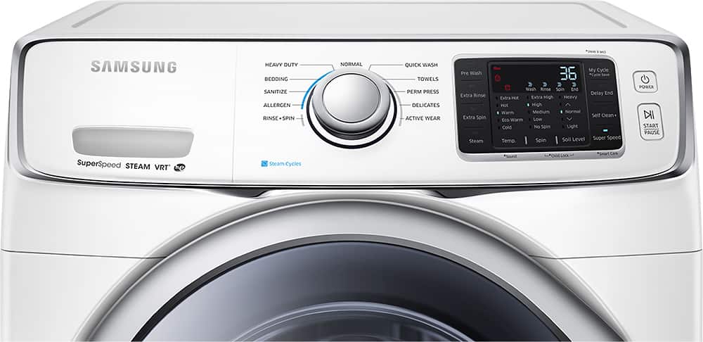 This Samsung washing machine is amazing. No comparison to our old top loader. Very quiet machine. It has steam, but in one month I have only used the steam once, just to try it. If purchased again, I would save the money and not get the steam option. Clothes come out great. Purchased the 3 year added service agreement for $79, other store was $119. Free delivery, free install and take away of old washer, 18 month no interest financing, all big pluses . Also got a $50 rebate from Com Ed! Bought it on Dec 29that 8:30 pm and it was delivered at 7:30 am on the 31st. First load was a queen sized down comforter. Came out clean. Samsung 5400 and Best Buy, purchase could not have made me happier.