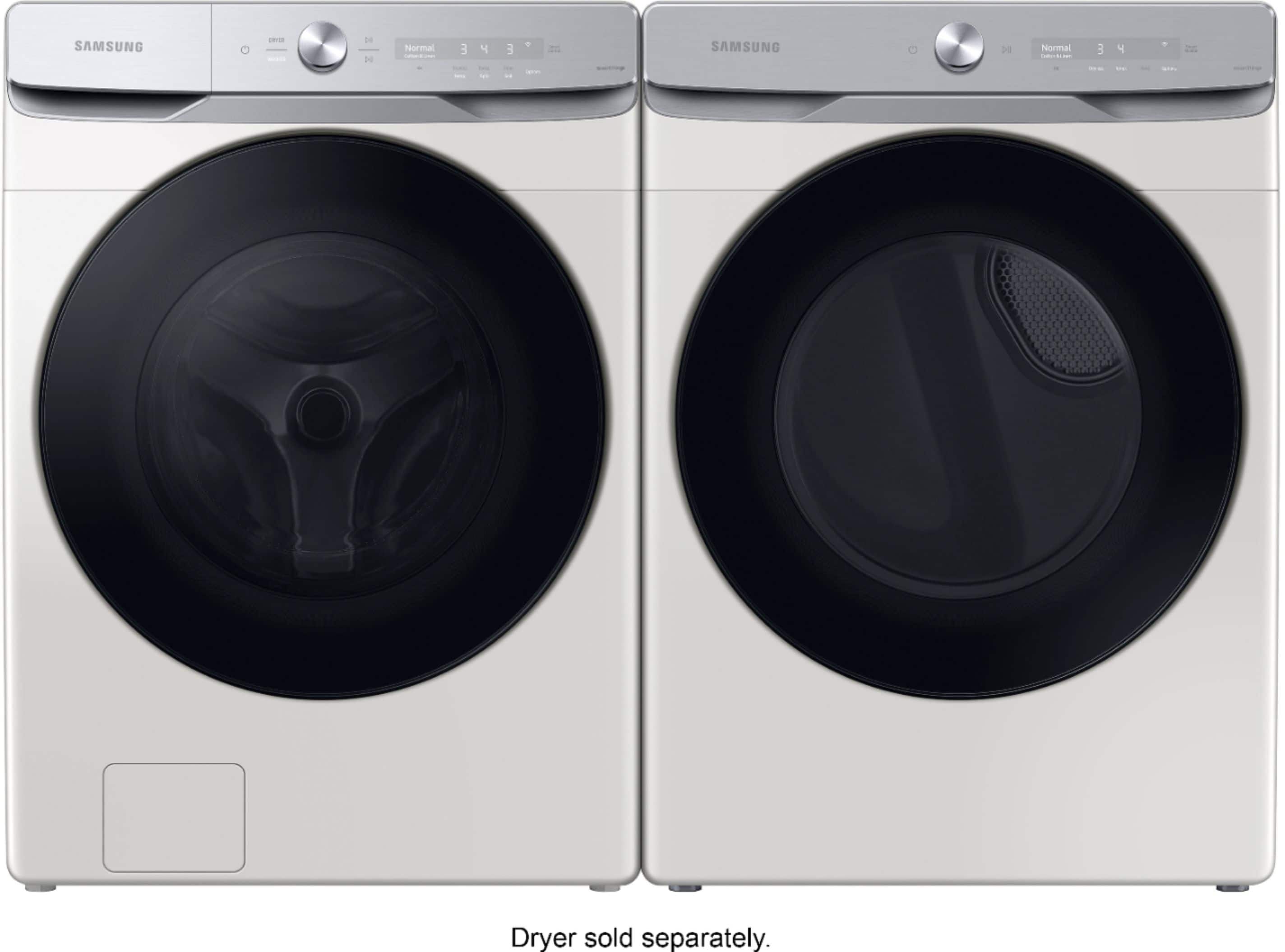 We are in love with our new Samsung Washer! The color we chose was Ivory which is off-white and looks elegant in our laundry room. It does have stainless accents which make it very modern looking. The “Smart Dial” control learns my day-to-day cycles and automatically puts them as first choices to make setting my laundry up quicker. The extra-large 5.0 cubic feet leaves ample space to be able to wash all my big loads like comforters and blankets without having to go to the laundromat. The Wifi Connectivity is a game-changer. I can set my laundry loads to go from my phone and then monitor the progress with notifications on my smartphone/smartwatch when it is completed. Laundry cycles are faster than my previous Samsung washer. I'm able to do more loads and finish quicker. There's also a feature called Laundry recipes where it auto presets for your type of loads. The steam cycle lets me wash my delicates with ease. The washer is super quiet - Don't even hear it much when it's spinning. The washer also notifies me when it needs to be cleaned and there you can set a self-cleaning wash. The units can be stacked with the dryer on top but we decided to buy pedestals and put them side by side. If we had opted to stack there's a feature on the washer to control the dryer from the washer and not have to reach to the top of the dryer controls. My laundry comes out so clean and smells so fresh. This was a great upgrade to our home.