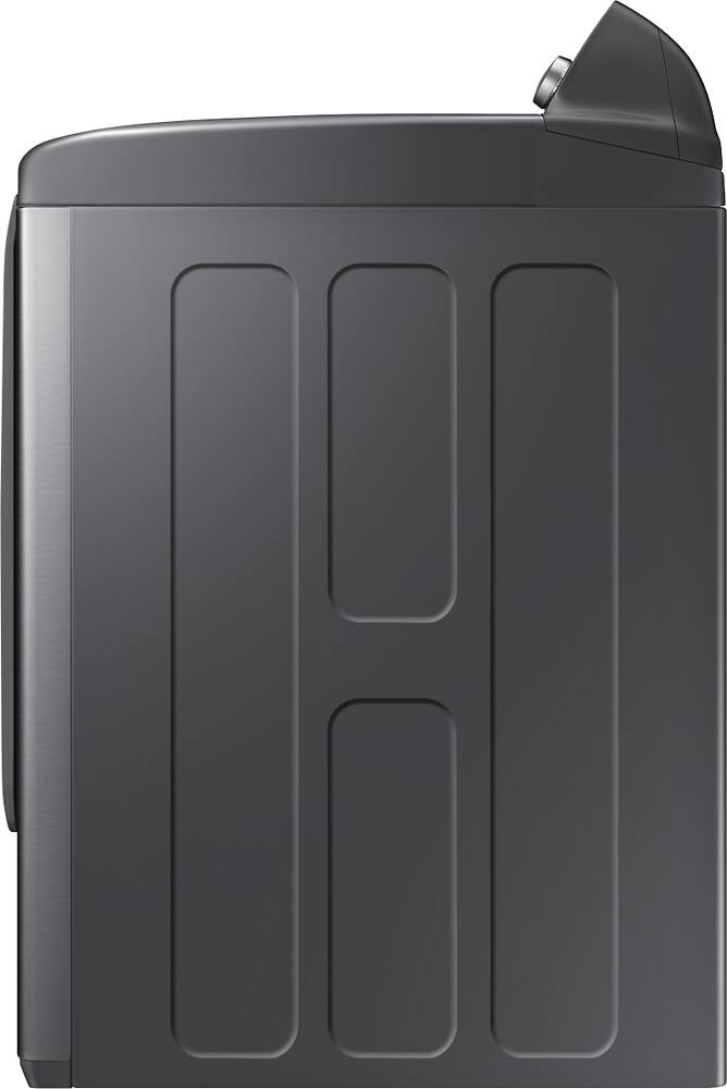 We bought this dryer to go with the matching top-loading washer. It's a large dryer and clothes come out relatively dry and unwrinkled if the correct settings are chosen. Switching the door opening to the other side is relatively simple, which was nice since I had to do it myself :) I've tried the steaming feature a couple of times and felt like even though the dryer was on high (which is required to use the steam function) it still left the item kind of damp and not as wrinkle free as I'd hoped. I also feel like it takes a couple cycles to dry clothes, but it could be because we had to get a gas one (which I haven't used before) or because I try to use low heat setting on most of our clothes. I also wish it had a delay timer for when I don't have time to fold clothes right away. It does the job and has some nice features, plus a cute tune it plays when the load is done drying.