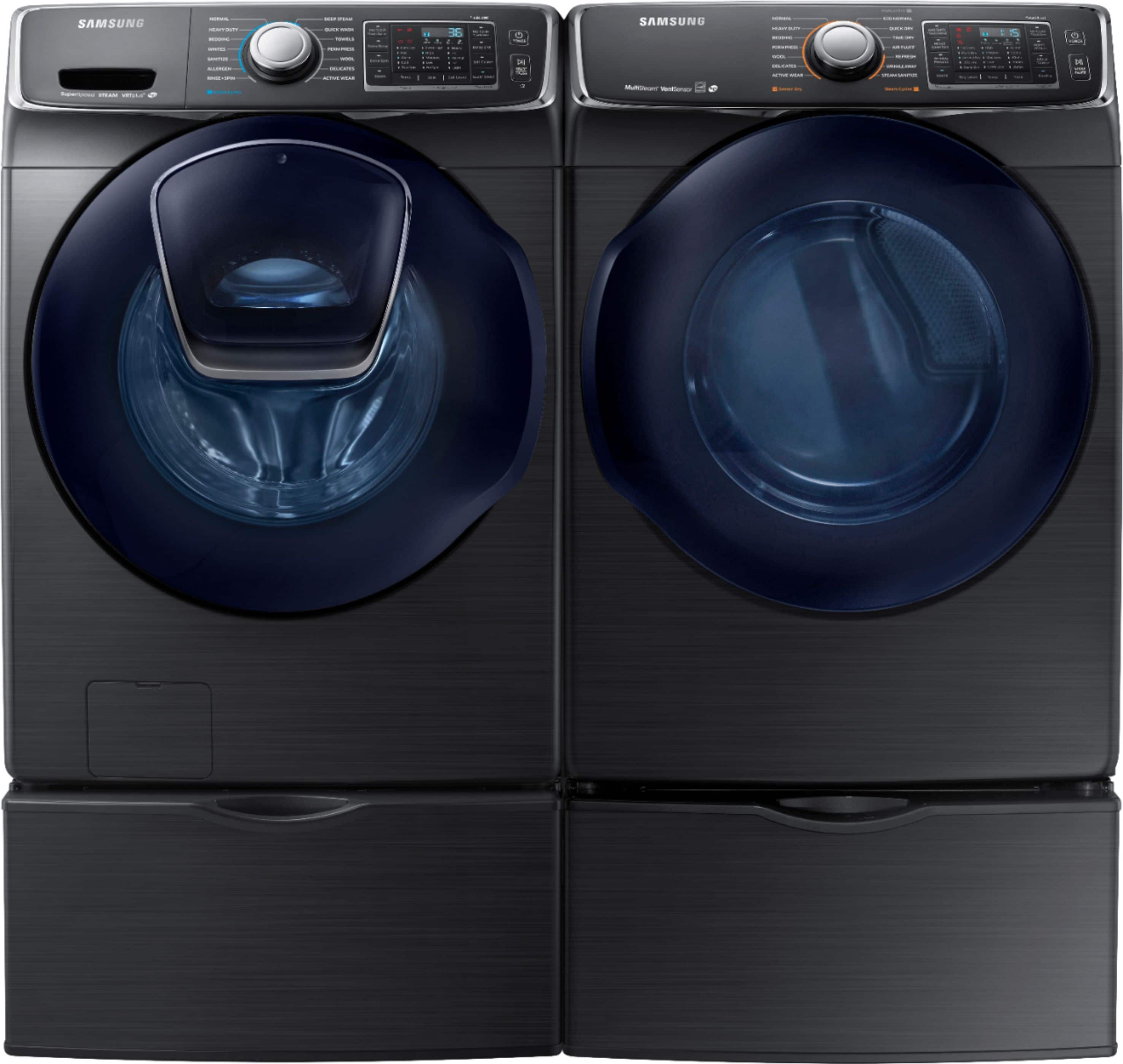 What an absolutely beautiful set. Love the modern look and the black stainless look. Got this set on a great deal to replace our old top loaders. The dryer works excellent and also has a steam option to fluff up your wrinkled clothes. Can be stacked as well.