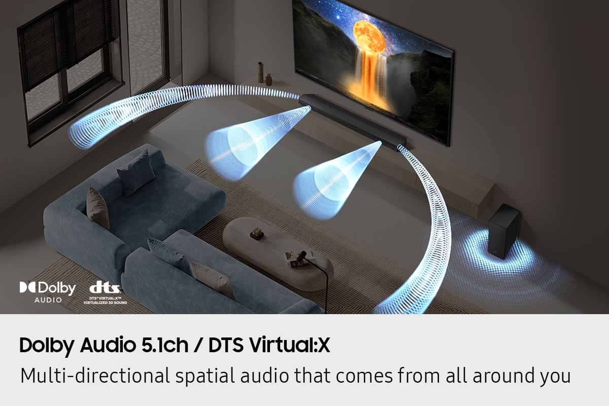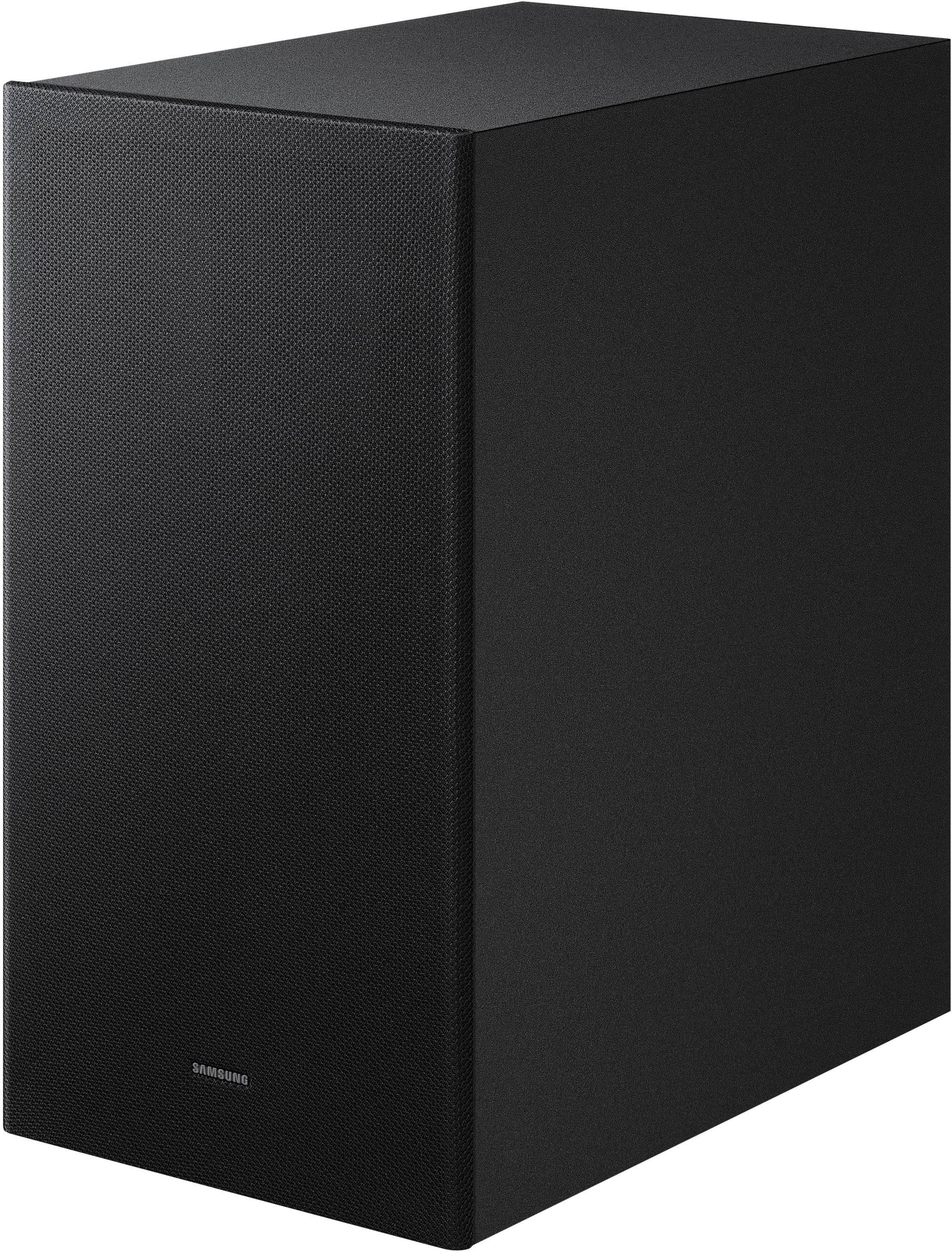 Clean crisp sound and a great value for the price. Wish it was a bit louder, but the bass makes up for it, you feel it. We love using it with our Samsung TV adds another speaker to the system with the Q Symphony feature. Surround works perfect when you sit in the sweet spot.