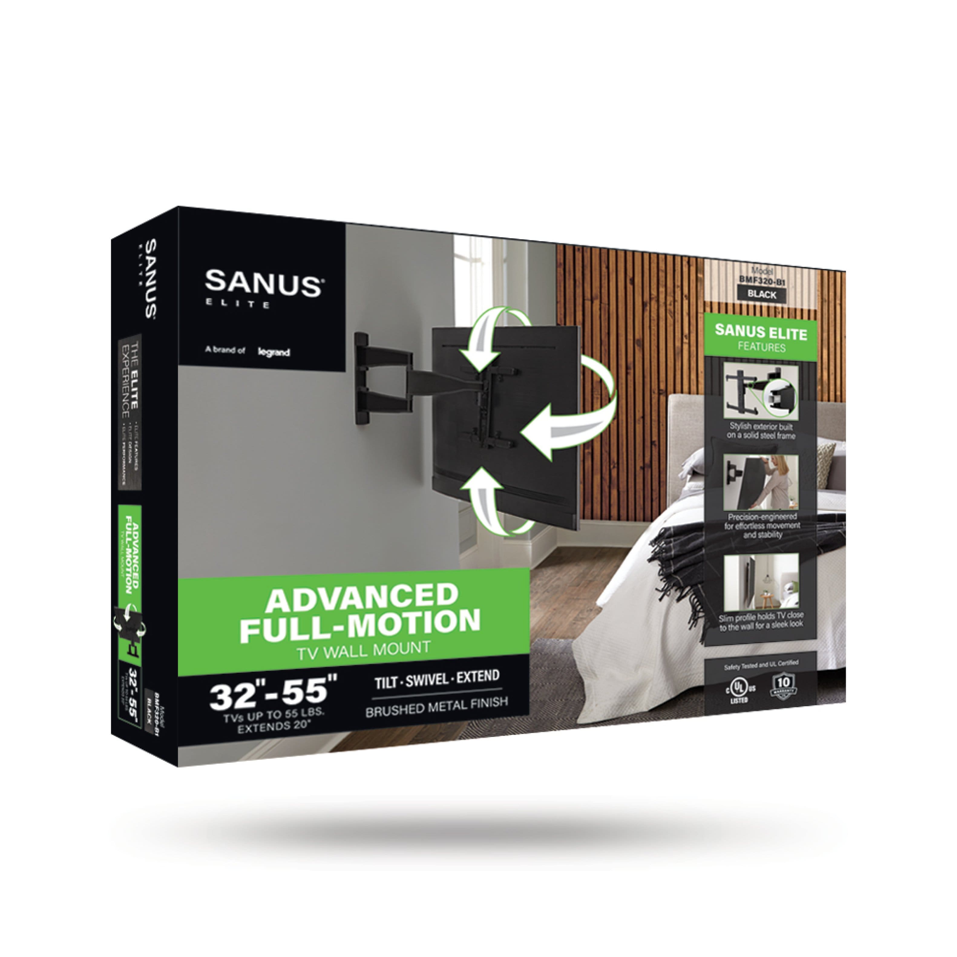This review is from SANUS Elite - Advanced Full-Motion TV Wall Mount for Most 32"-55" TVs up to 55 lbs - Tilts, Swivels, and Extends up to 20" From Wall - Silver Brushed Metal