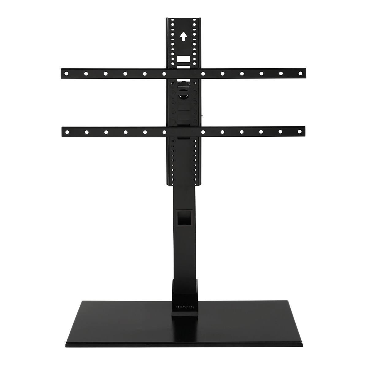This TV stand is a game-changer! When we upgraded to an 85" TV, we were worried about having to buy a new entertainment stand, but this piece of equipment saved the day. Our TV doesn't have an adjustable mount, so this stand was the perfect solution. It also provided a neat spot for our sound bar right under the TV. The construction is top-notch with its powder-coated design, and the best part? It assembles in under 10 minutes. From unboxing to having the TV mounted, it was a breeze. The stand gives a near wall-mounted look for a TV of this size, which we absolutely love.