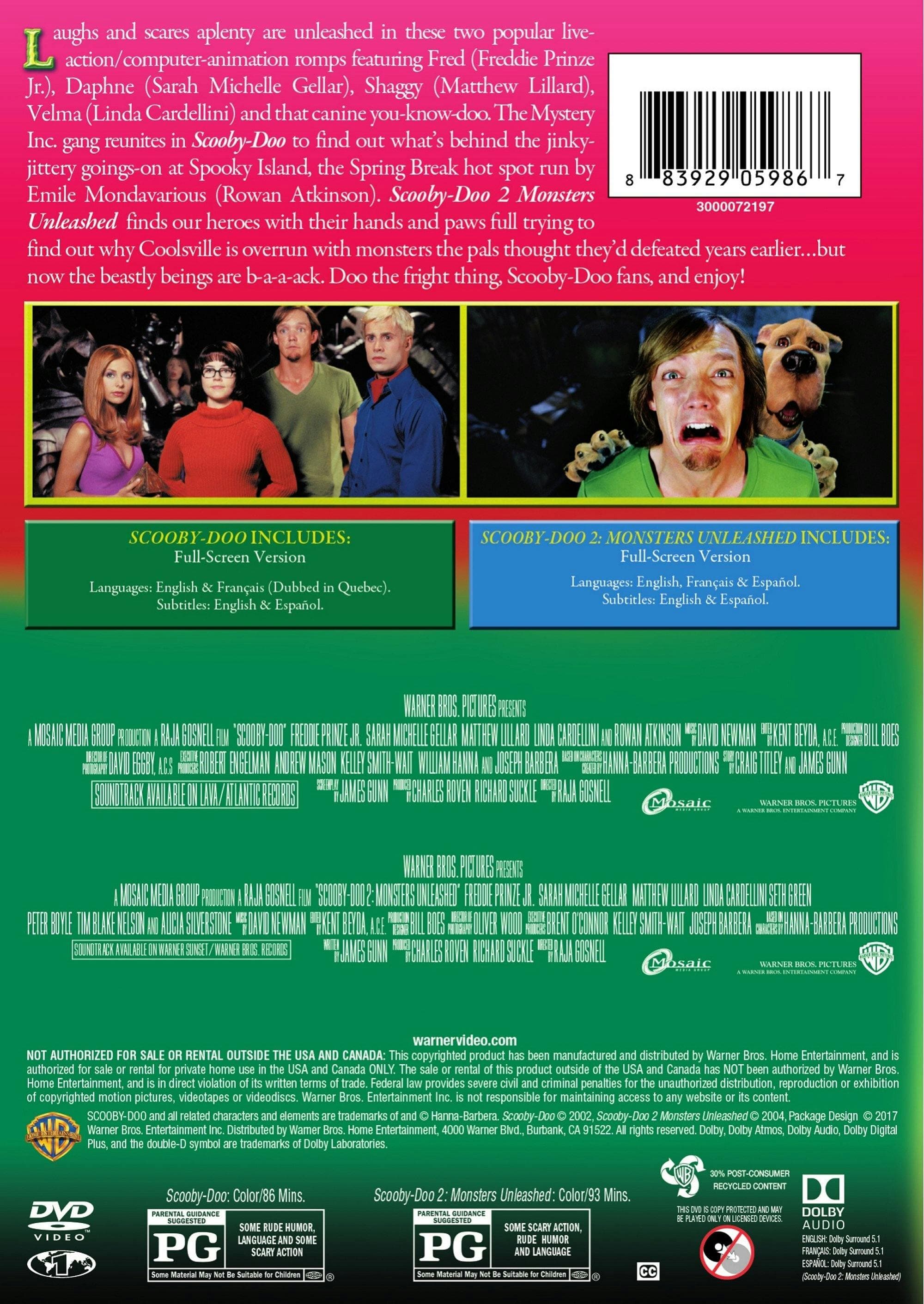||Posted .This reviewer received promo considerations or sweepstakes entry for writing a review.Nothing better than getting 2 movies for 1 price. Scooby Doo is just hilarious, everything you love from the cartoon in a live action movie.