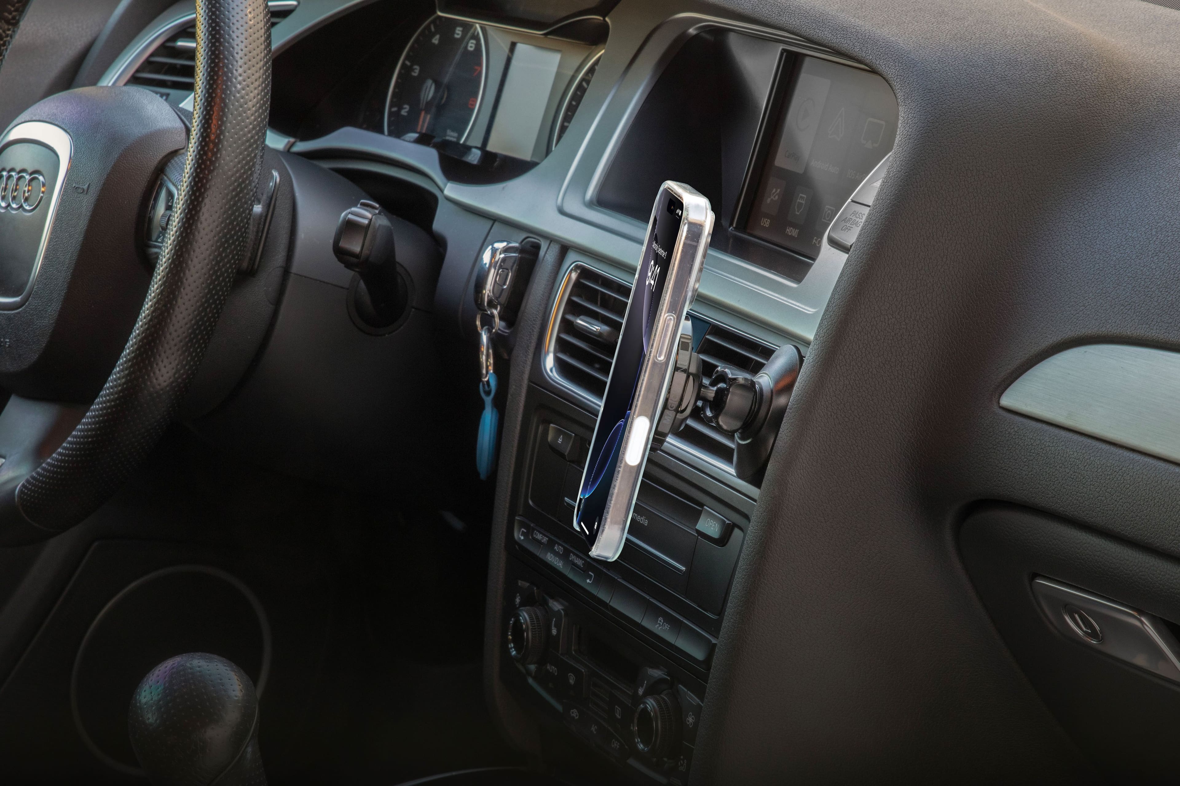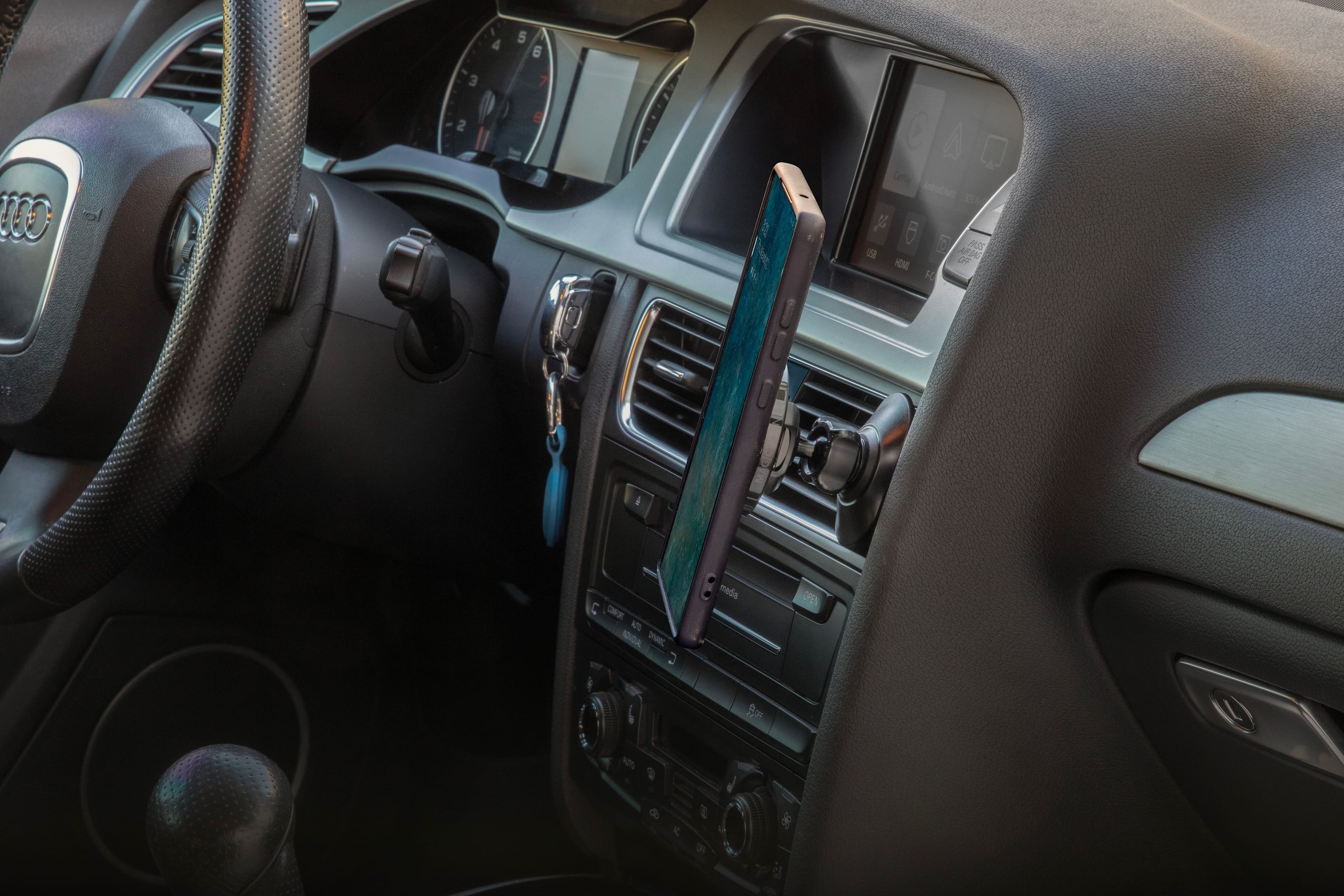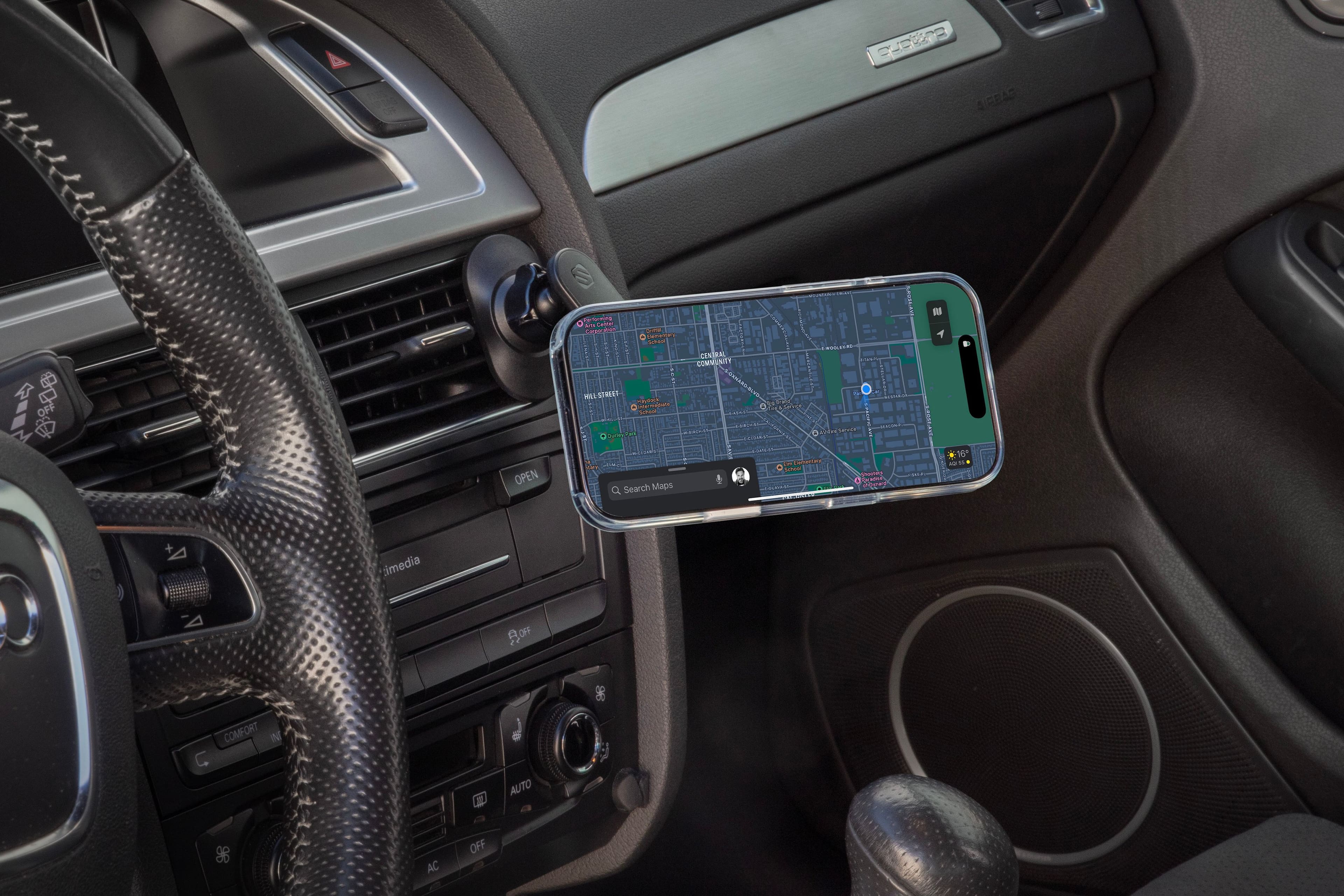 Put it on the vent in the Corolla and it held fine. (i phone 16). Put it on the Camry vent and would not hold. It was useless on our long trip.