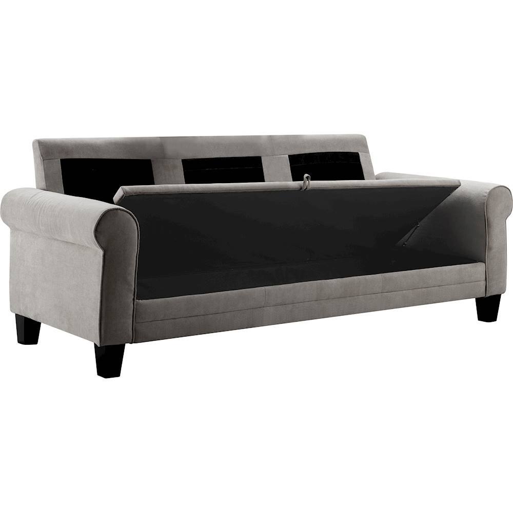 We received the couch without legs. Contacted Best Buy, they immediately tried to contact their vendor while we were on the phone. Best Buy was not able to contact the vendor so they credited us 10% of the purchase price so we were able to purchase legs elsewhere. The couch has storage under the cushions and the pistons used to support the lid were installed with tiny screws. One end of each piston had the screws pulled out of the wood and one piston did not function, so we just removed the pistons. The cushions are held in place with a velcro strip that is under the front of the cushion on the bottom parallel to the front of the couch. When you sit on the cushions they slide forward and overhang the edge of the frame, which is quite uncomfortable and also looks a little shabby. The rear cushions look like over stuffed pillows. In the picture the cushions all look like they are sturdy with clean lines, but after sitting on it that is not the case. We are able to make it look somewhat like the picture after each use, but I find it very uncomfortable and disappointing. We thought it would be good quality because it says Serta, but that is not the case with this couch. We were going to get the love seat but we opted for 2 chairs instead.