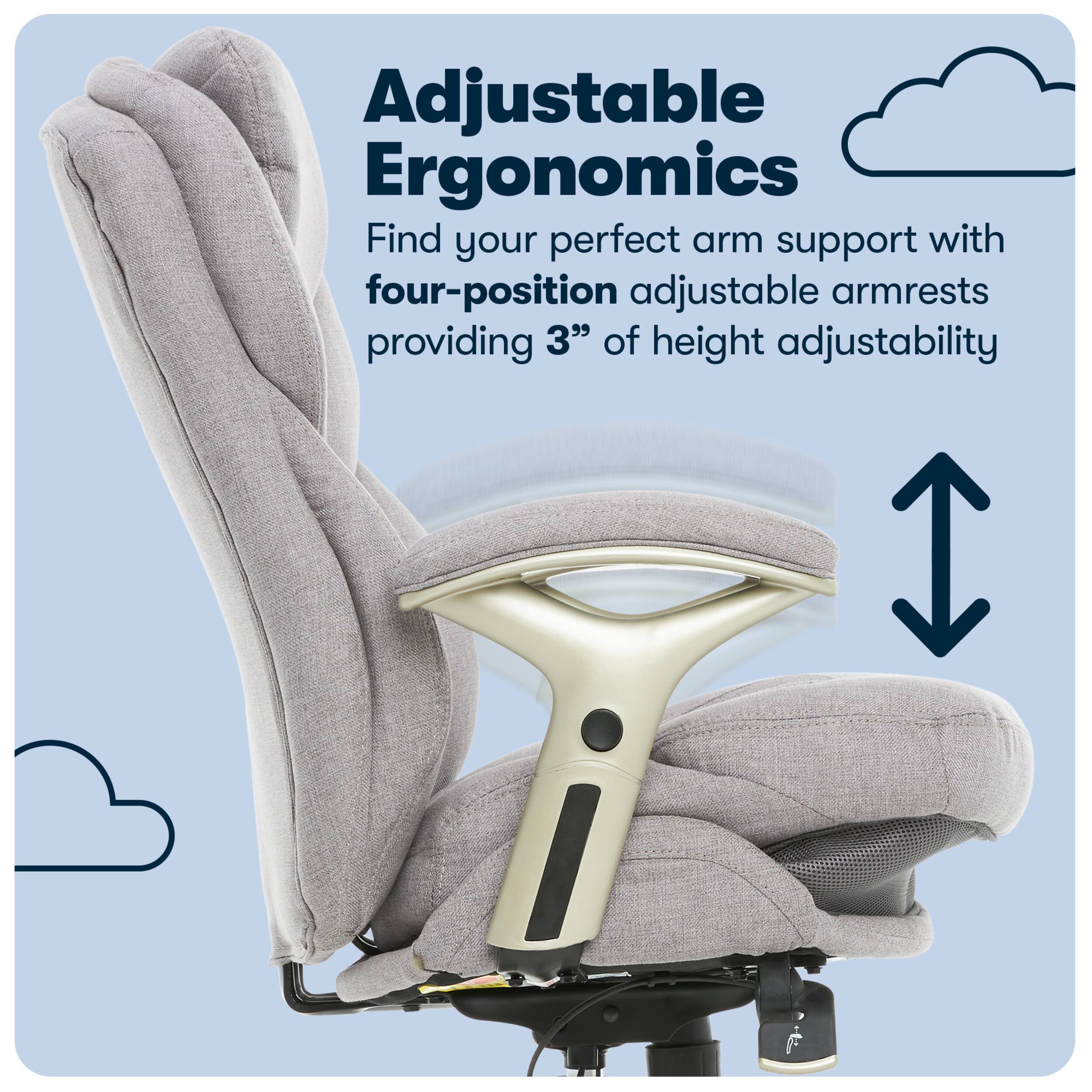 This chair is comfortable. The best part is the lower back support. It took getting used to, but my back feels better at the end of my work-at-home days!