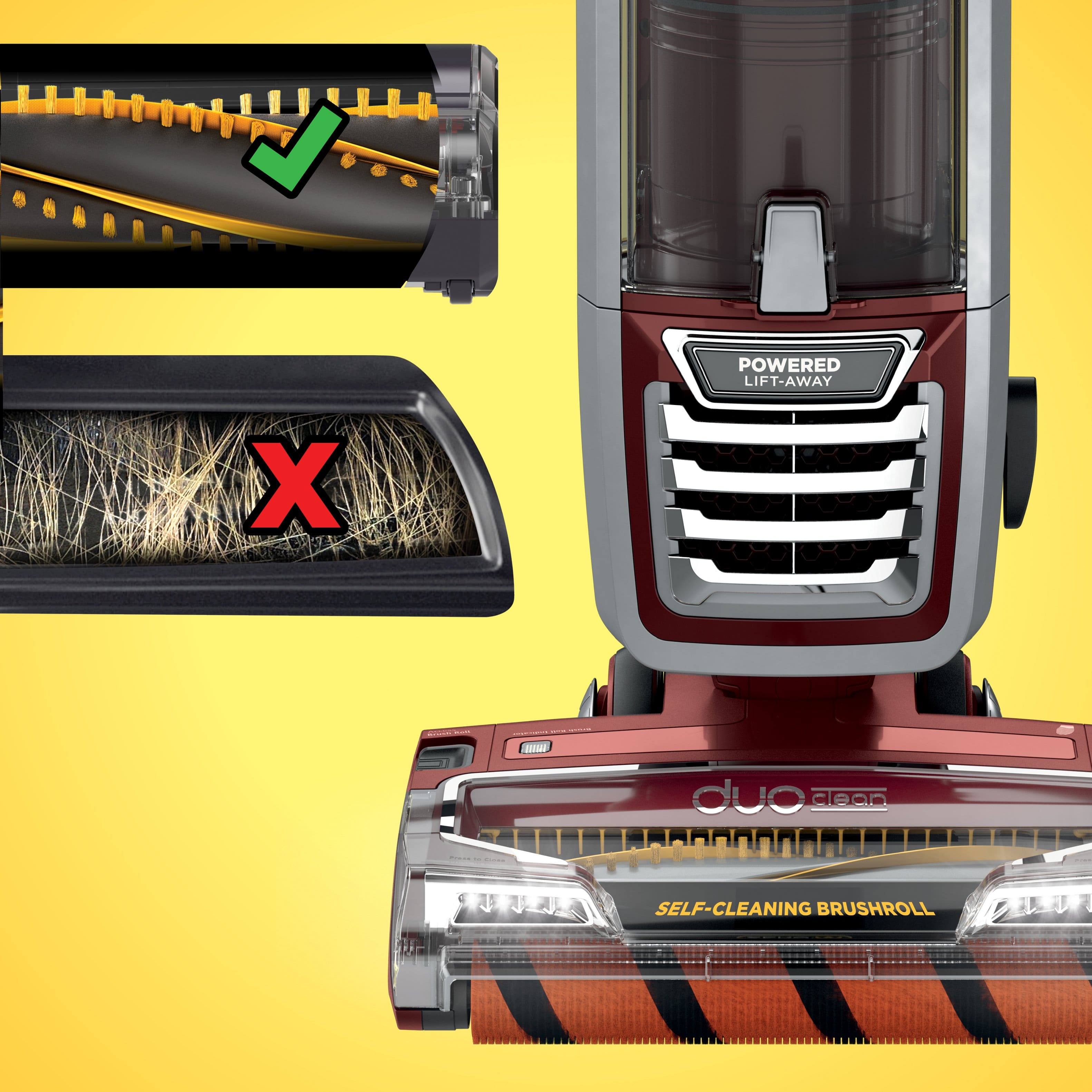 Customers express satisfaction with the DuoClean vacuum's powerful suction and ease of use, highlighting its strong performance on various floor types and the convenience of its attachments. Many appreciate the self-cleaning brushroll and the ability to easily clean under furniture. However, some customers find the vacuum to be heavier than expected.