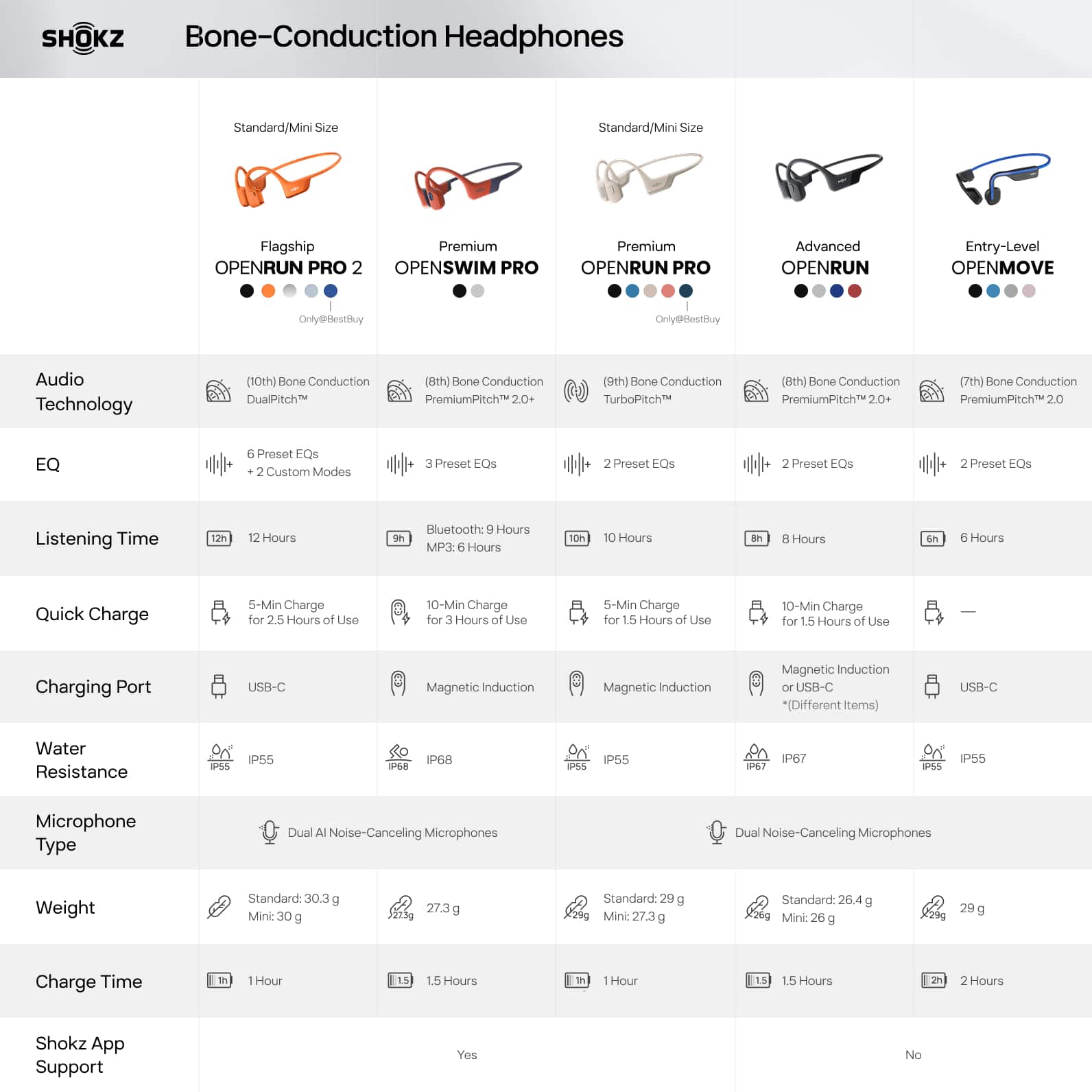I have been using the Shokz headphones for several years now. I am short and small, so when the Mini came out, I had to have them. They fit just right and of course, their quality is the best. Their guarantee is free for 2 years, and they always honor it, should something go wrong. I love Shokz.