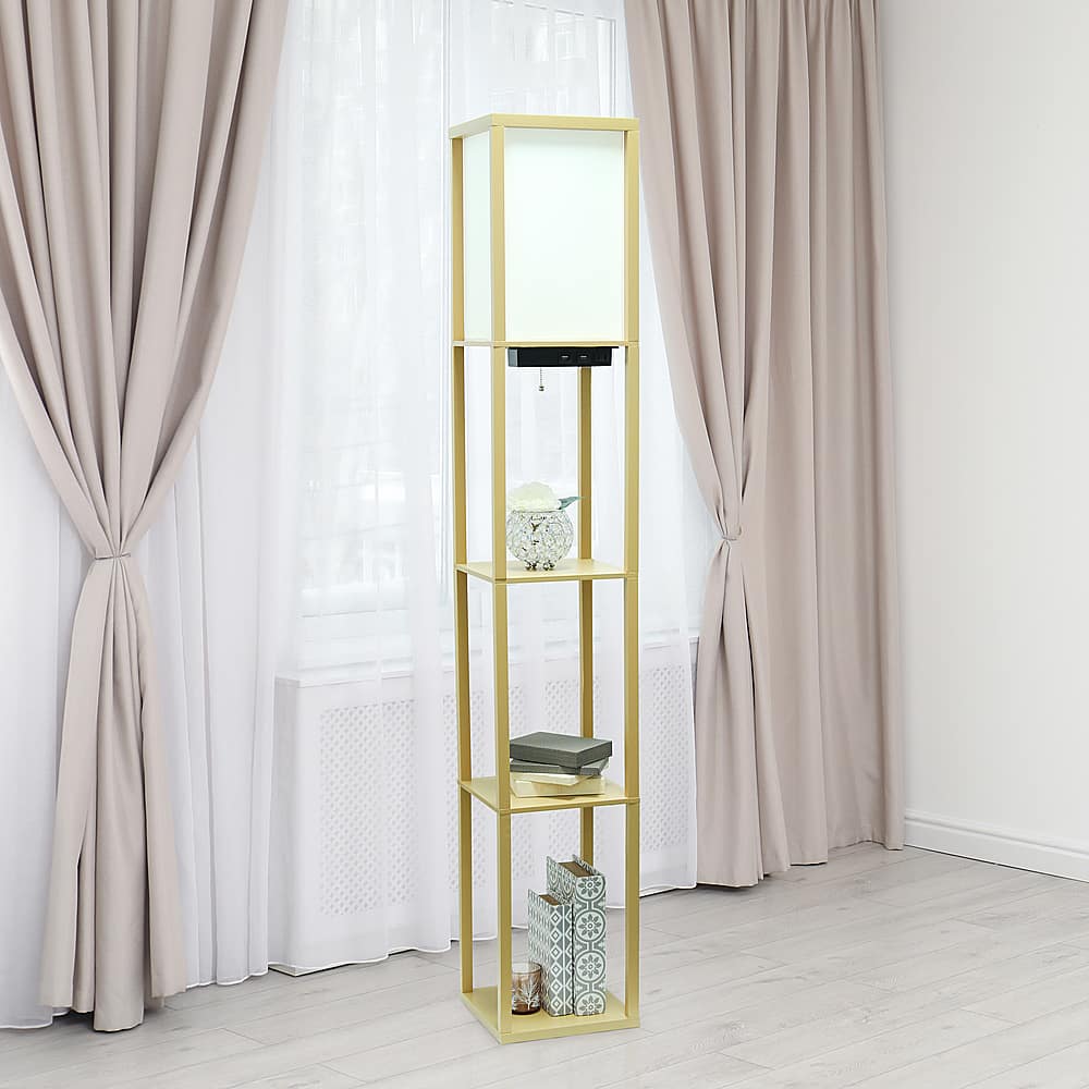 This review is from Simple Designs - Floor Lamp Etagere Organizer Storage Shelf w 2 USB Charging Ports, 1 Charging Outlet & Linen Shade - White