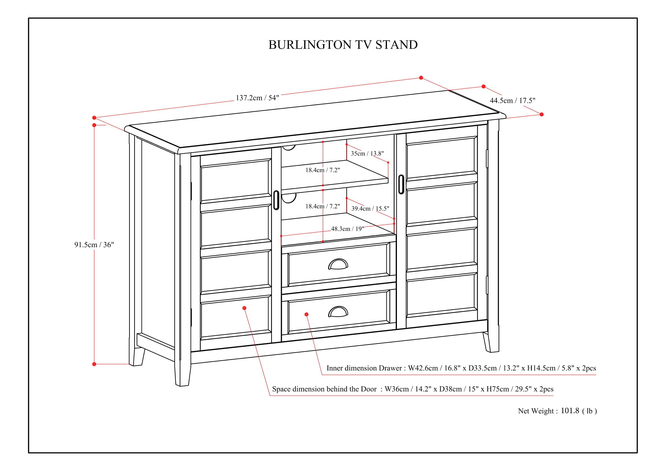 Hello Boon, Thank you for purchasing Burlington TV Media Stand and your feedback about the same! We’re glad to hear that you liked its look after assembly. We appreciate your note about its size and weight, as it is crafted by solid wood and we believe a sturdy design contributes to its durability and presence in your space. If you have any further questions or need assistance, feel free to reach out at [email protected]. Enjoy your new media stand!"