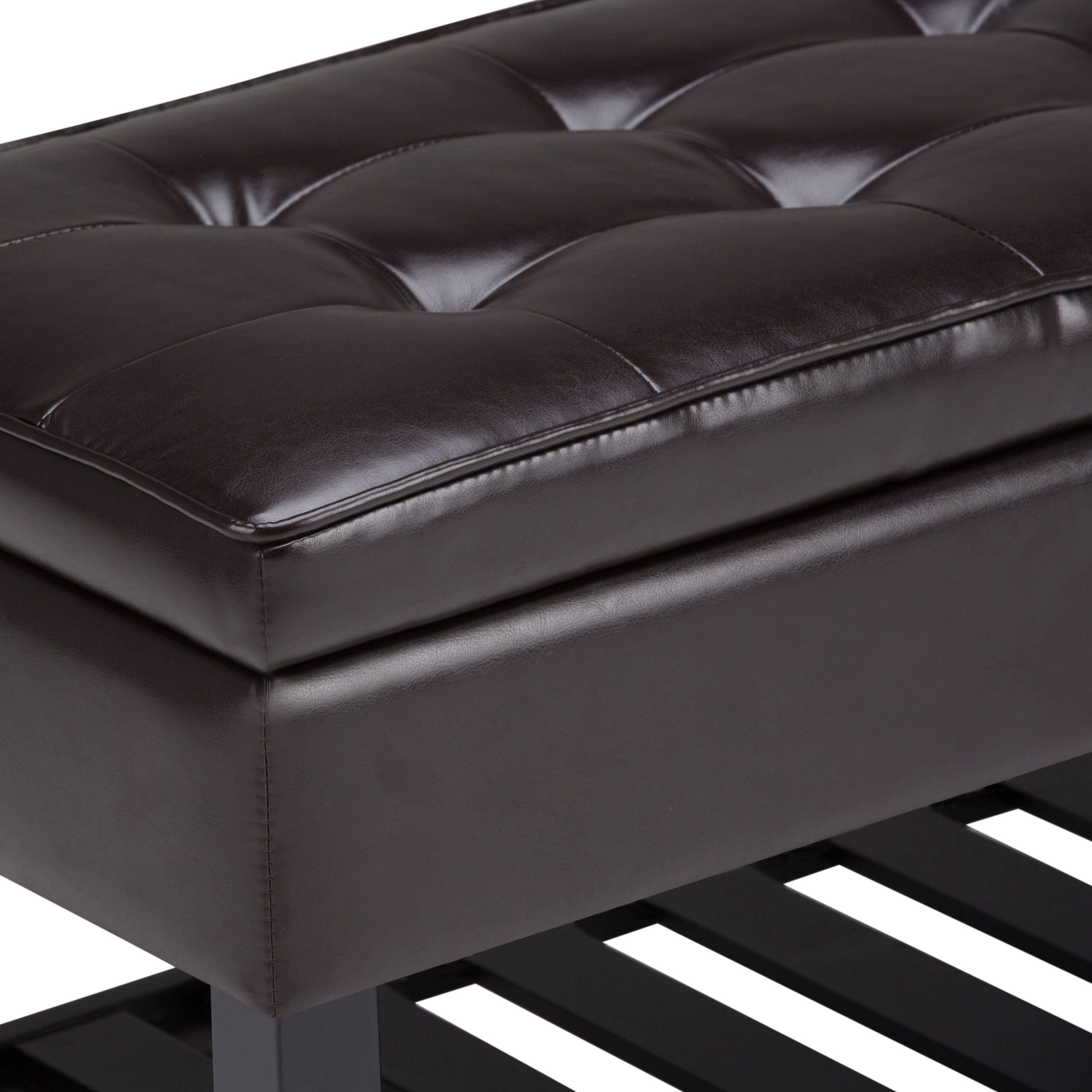 The storage ottoman bench matches the furniture in our living room and is great for storing shoes underneath as well as other items on top. My fiancee loves it.