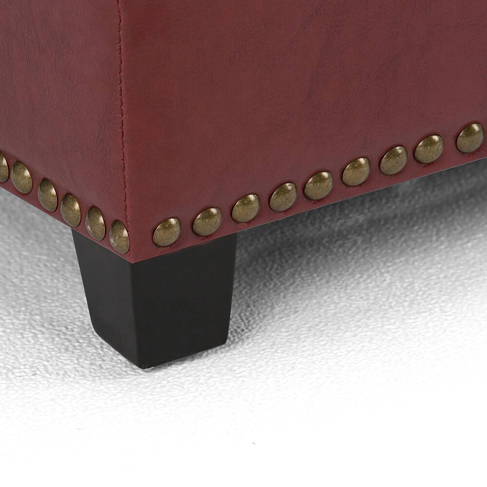 I purchased this to replace the current cloth one I have and the cats like to leave their mark on. This is a beautiful piece, but it will not hold all of the bed pillows like the current one and it does not stand as high so it can be easily sat on by someone who recently had a knee replacement. If you do not need a lot of storage space and do not have problems getting up and down from the sitting position, it's the perfect Ottoman for you!