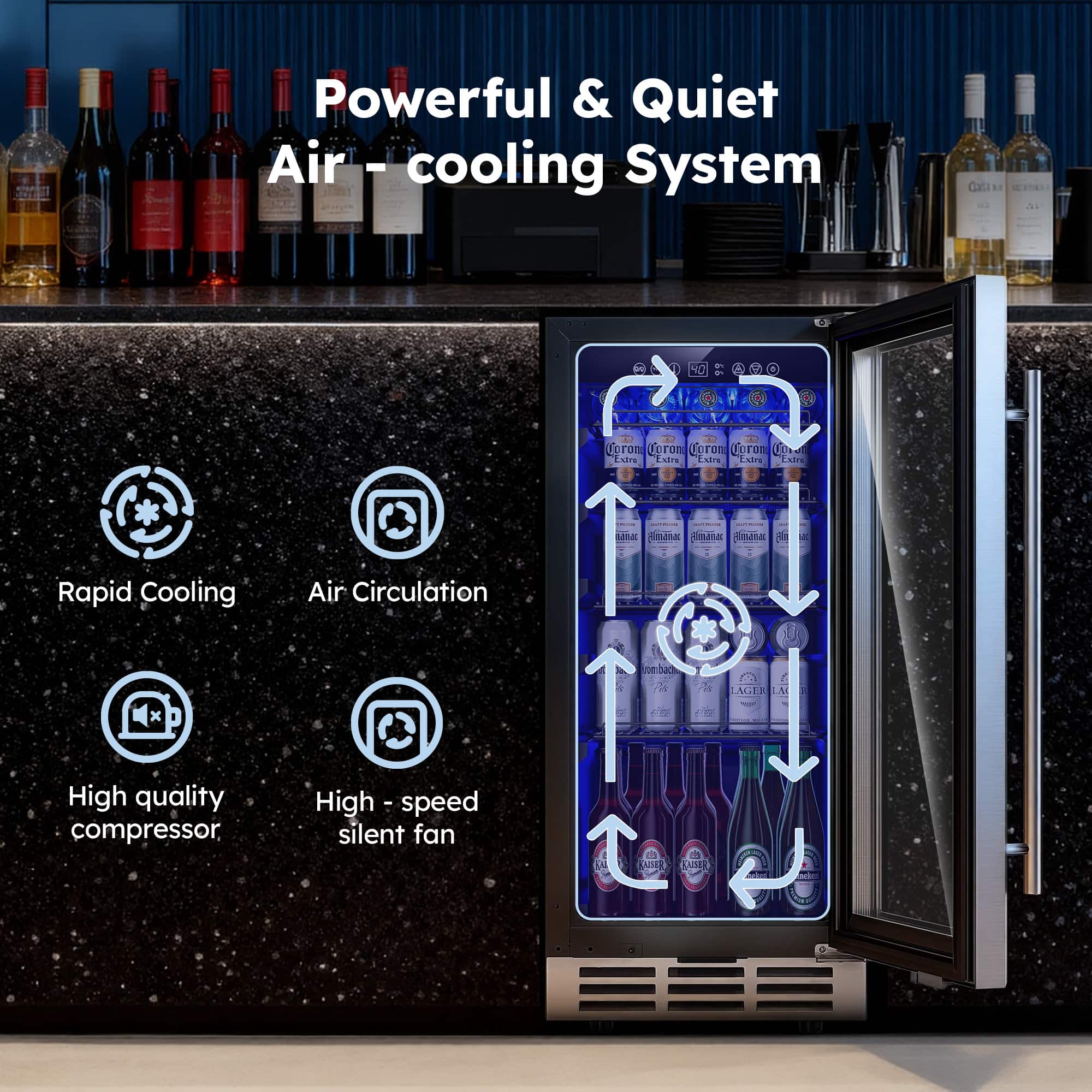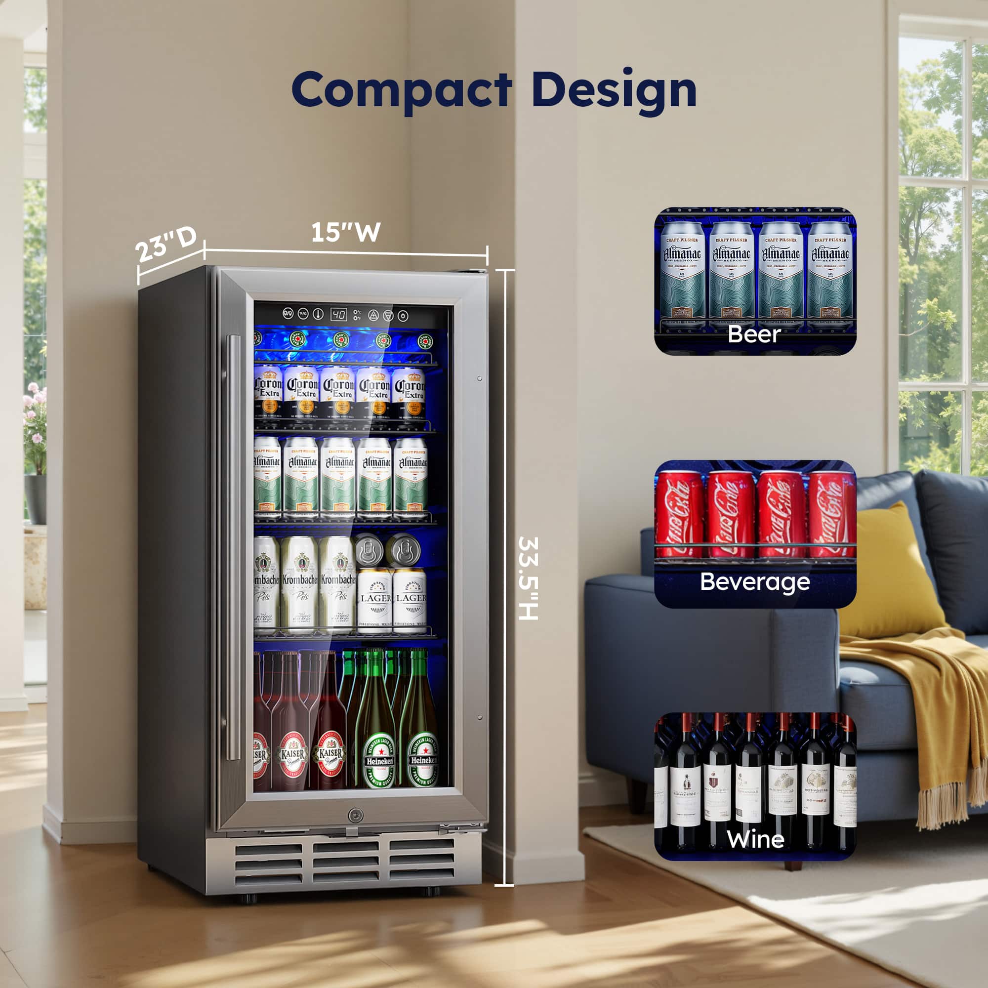 I brought this cooler into my bedroom with the intention of keeping a few drinks close by, but it ended up transforming the whole vibe of the room. The silver finish and glass door give off this soft glow at night that makes the space feel grown up and kind of hotel like, just without the weird carpet or the checkout time.