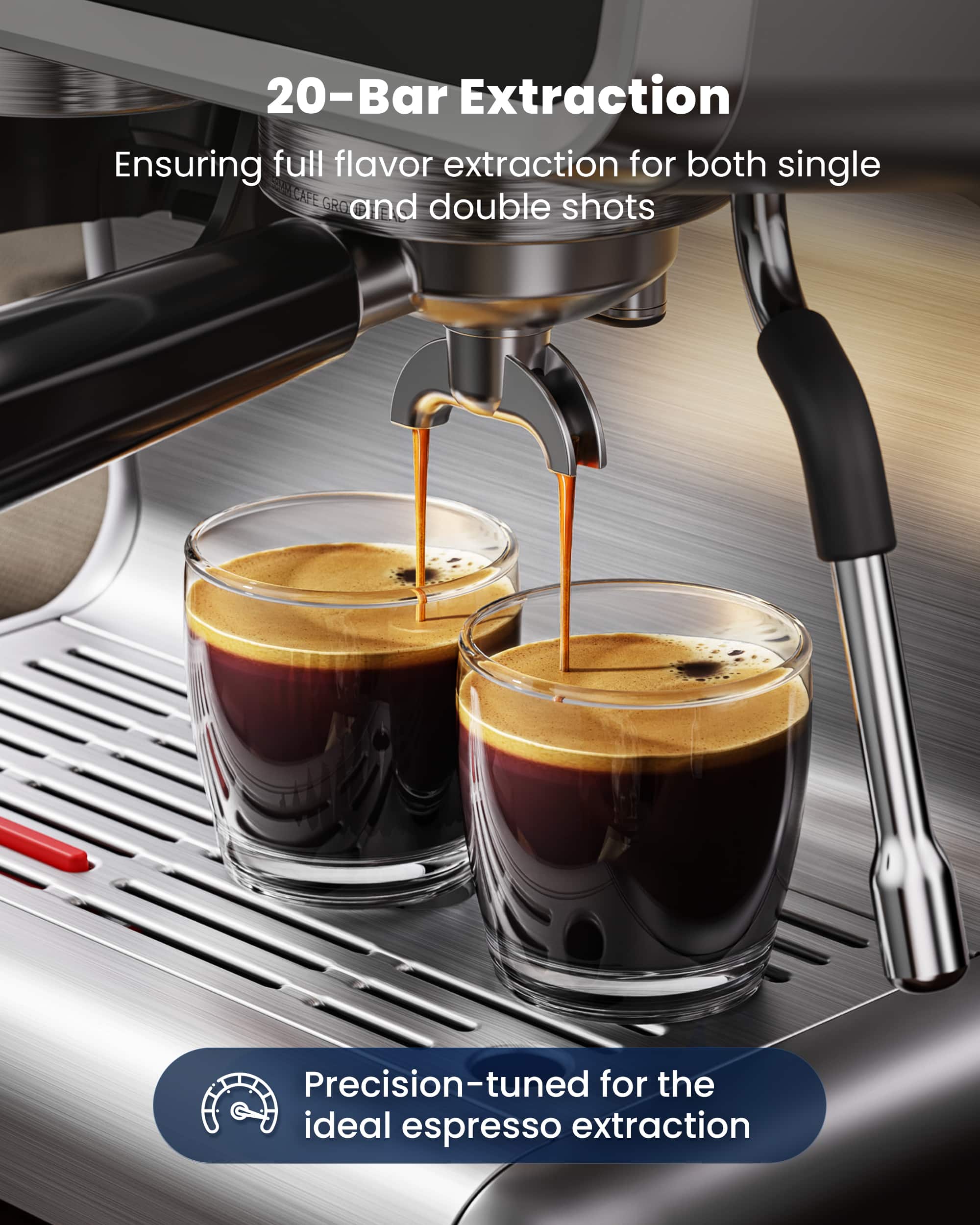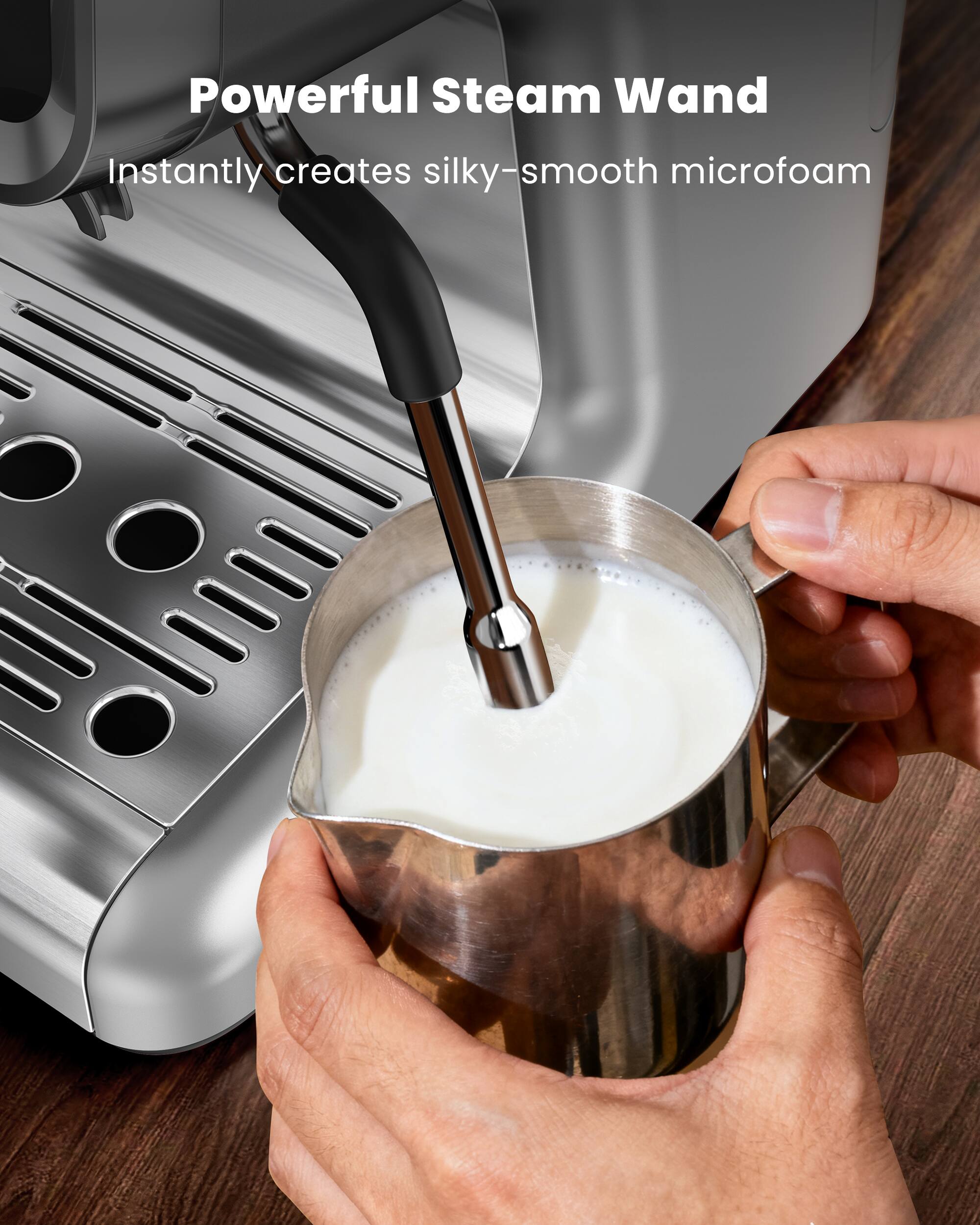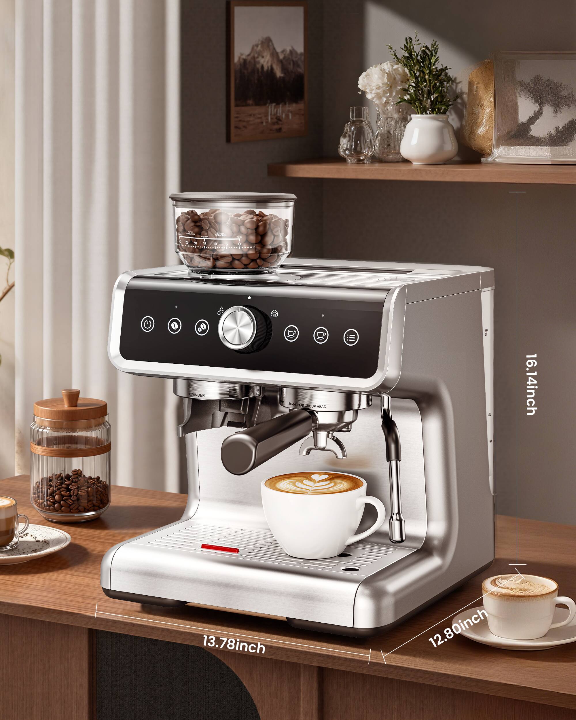 I’ve been using this Espresso Machine with Grinder for my daily coffee, and I honestly love it. The built-in grinder makes a huge difference — grinding fresh beans right before brewing gives the espresso a rich aroma and bold flavor with a beautiful crema. It feels solid and well-built, the controls are easy to use, and the steam wand froths milk perfectly for creamy lattes and cappuccinos. Cleanup is simple with the removable water tank, and overall it delivers a true café-style experience at home without the premium price tag.