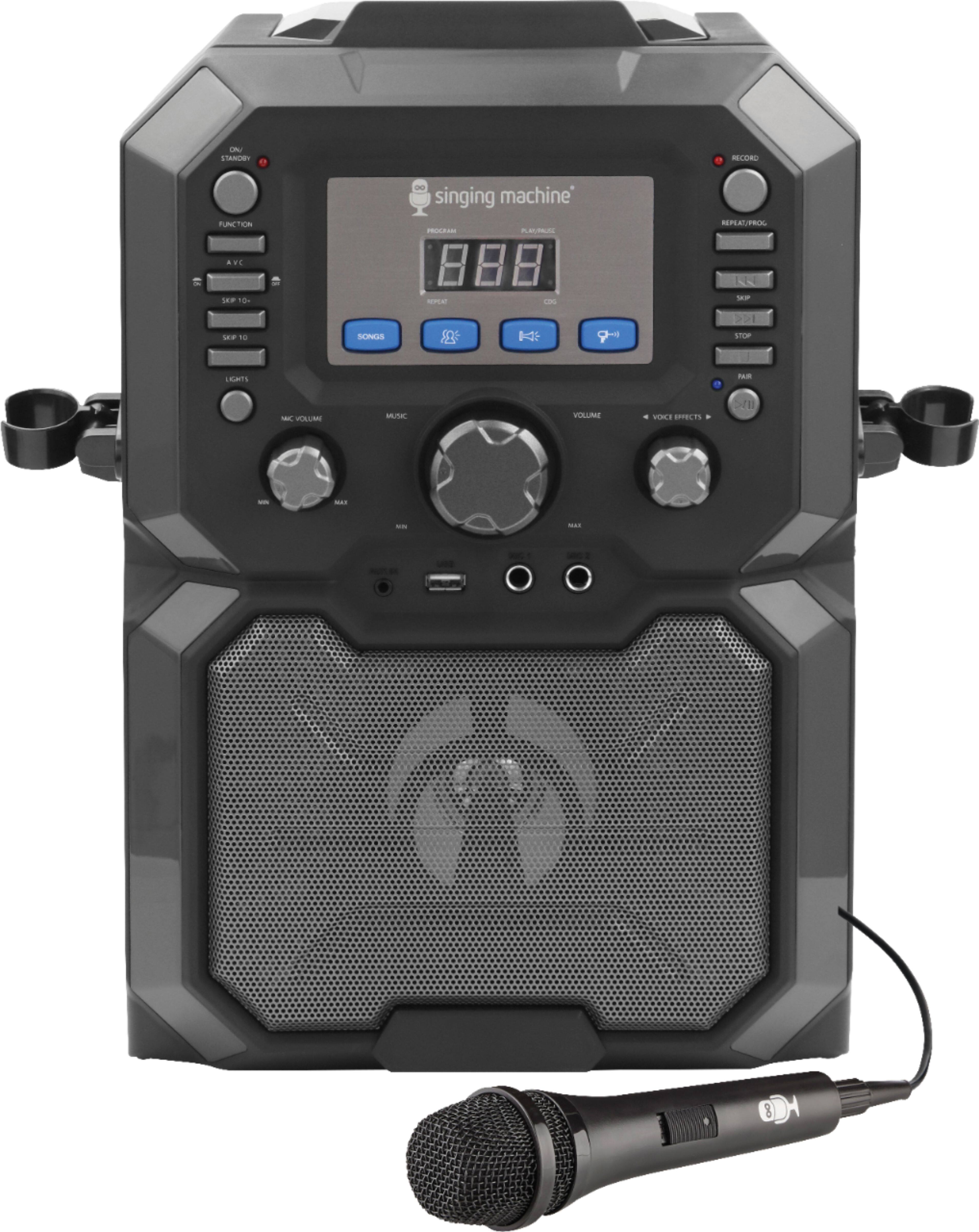 This singing machine is of poor quality and one of the microphones did not work when I opened the box. I tried to return it to Best Buy and they said the vendor did not allow that and that I had to go through the vendor. I contacted the vendor and they said it was Best Buy's policy not to accept these returns. They opened up a ticket for me to begin the return process 3 days ago and I still have not heard anything back from them.