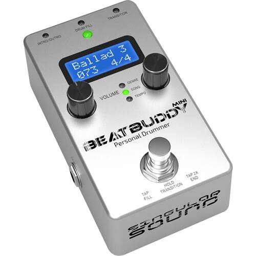 Posted .This reviewer received promo considerations or sweepstakes entry for writing a review.I am impressed with the beat buddy mini. This does not have all the other features that the big beat buddy has but it gets the job done. You WILL need a bass player if you want to have a full band if you play shows with this. You can still just do a drum and guitar to help you keep time. This will help you do it. With this beat buddy mini you will have some limitations to it. Go with the big beat buddy if you need to have more complex drum parts. For doing a bar gig or a coffee house gig or where space is limited this is a great unit. GET THE AUXILIARY FOOT SWITCH you will want it later so get it while you are ordering the beat buddy mini or regular beat buddy. It comes with the cord to hook it up so no worries there. The beat buddy mini comes with its own power supply OR if you are like me you have a snark power supply and a cord to plug in up to 15 pedals. You can do that too. This will all fit in your gig bag or on your pedal board. This is a must have for every musician and it is great for practice and jam sessions too. Get one and have some fun. Plan on getting the regular beat buddy. sooner or later you will be wanting one after using the beat buddy mini. If you need a drummer but cant afford to hire one get this instead and you are set.