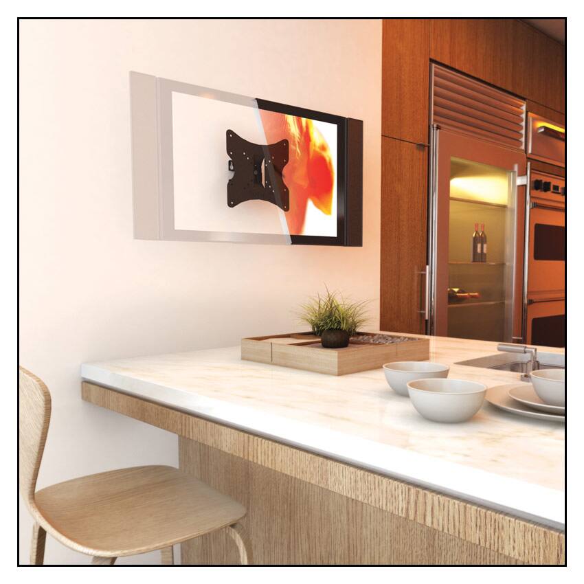 Firstly, I would NOT call this full-motion. Call it tilting on X and Y axis. Secondly, this thing is HARD to install, as in, requires TWO people. That should be listed somewhere. Once you do get it on the wall, I hope you have it adjusted how you want it. You have to take the whole thing down again if you need to make an adjustment. I've been cussing it for 30 minutes in my living room and am contemplating a return of it and the TV at this point.