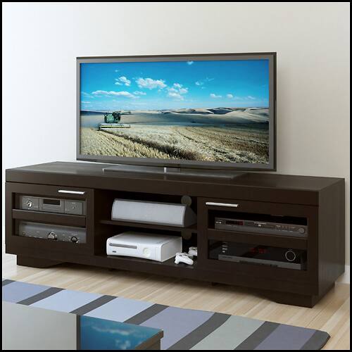 Wanted a bigger and nicer looking TV stand for my family room. I looked at the high end ones like Salamander and BDI and, boy, those are way too expensive for my budget. Found this one on line and saw that it was also available from Best Buy, so, I choosed to purchase from Best Buy for a few bucks more since I can easily return/replace if there are problems. Overall, this is a very nice looking TV stand with adequate room for my stuff. I have a full size receiver, FIOS box, Blu ray player, CD carousel, an XBOX 360 and a ROKU. They all fit with plenty of room. Assembling this thing took about an hour or a bit more. I did not time it and I was in no hurry. The instructions were easy to follow and the pieces were marked for easy identification. My only gripe is that the darn thing is a little too shallow. I wish it would be about 2 inches deeper. Let me explain why. I have an old style receiver and an old style CD carousel. The rear of the receiver has speaker plugs that take banana jacks. They extend about an inch +/-. Now the banana jack is also about an inch. When connected to a decent size speaker wire, like a 12 AWG, you will also need another inch since you cannot bend the wire right where they are attached to the banana jacks. All in all, after I plug in the banana jacks, it adds about 1.5 inches from the tip of the speaker plug. What happens is that the receiver now has added depth and you cannot open the "sliding door" because the front of the receiver protrudes out!!! Originally, I had the receiver on the left side (there are 3 sections). My solution to this was to move the receiver and CD carousel to the middle and then removed the back in the middle section. This way, I the stuff extending out from the receiver could stick out the back and I can push the receiver back so that the front doesn't protrude out to block the door from sliding. Lucky it doesn't look too bad and lucky that the rear panels are in 3 pieces for left, center, and right rear. If you have old style components like me and are using high-quality wires, measure the total length of your components with the wires first before purchasing this.