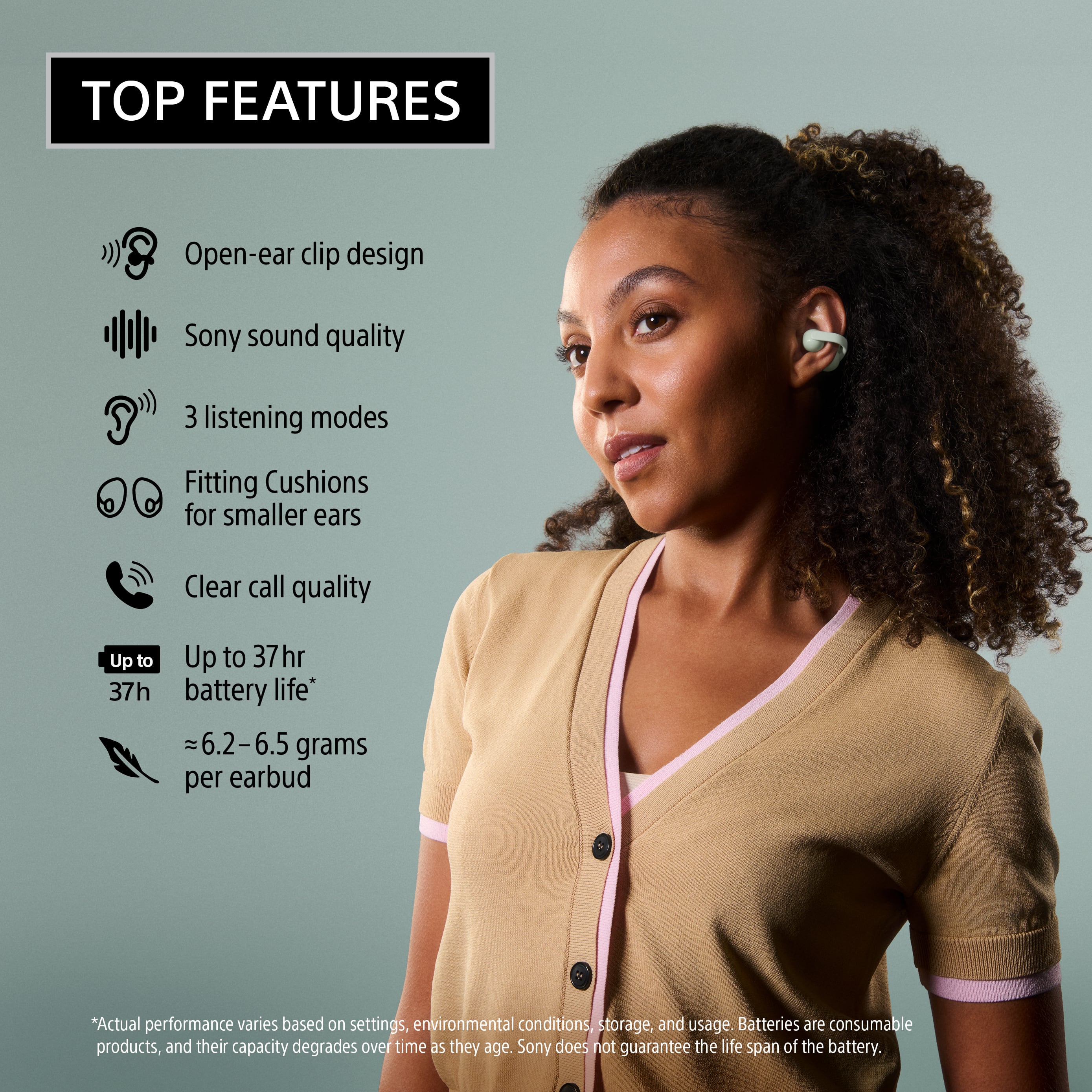 The Sony LinkBuds Clip Truly Wireless Open Earbuds are amazing! I am a person who does not like having anything inside the ear when listening to music. Traditional in-the-ear ear buds tend to bother me, and I do not like wearing them for long periods of time. Sony LinkBuds do not go inside the ear opening, instead they wrap around the outer part of the ear securely so the sound can be heard just as if they are inside the ear canal. They are both comfortable and functional while walking or even using the elliptical machine at gym. They do not slip or become uncomfortable at all. The sound quality is also great. Once the LinkBud is positioned properly, the sound is just as crisp and loud as traditional ear buds. The LinkBuds connect easily through Bluetooth to an iPhone, and the app is easy to use and set up. There are finger controls to increase the volume as well. On the app, the sound can also be adjusted easily for optimum output. I especially like how light-weight they are and how easy they are to clip onto the ears. Each LinkBud is designated for a specific ear and charge quickly in the included charging case. I love the light green color of them as well. They blend in more than a bright white or dark black. Overall, I really enjoy these LinkBuds and look forward to using them on long flights. I avoided ear buds in the past for long periods of time due to discomfort. I am hoping the LinkBuds will increase the length of time I enjoy listening to music.