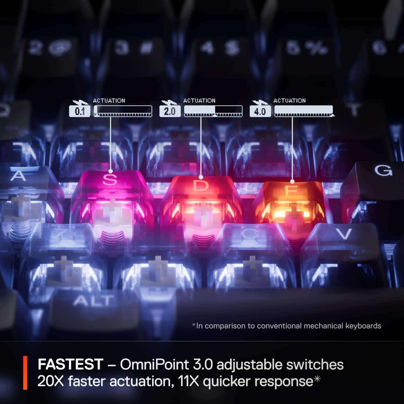 |Posted .This reviewer received promo considerations or sweepstakes entry for writing a review.The Apex Pro Mini Gen 3 is a great keyboard for competitive players. It sports a 60% design helping you stay comfortable and keep your mouse more in front of you instead of out to the side. Its got what it claims to be the fastest Hall Effect sensors on the market, Rapid Trigger / Rapid Tap switches, adjustable actuation and Double Shot PBT keycaps. Build Quality: The build quality of this keyboard is pretty good. The keys are constructed with double shot PBT and feel really good to type with. The base is sturdy with a little bit of weight which helps it from sliding around due to pressure from your hands. It has the legs underneath to allow you to raise the back up for more comfortable typing. There is also a cover underneath for storing a keycap removal tool. Finally, the USB-C cable (included is a braided, decent length cable) is detachable. My only complaint with the build quality is the RGB for the long keys doesn't fully illuminate through, so at the end of the word like "ENTER" the lower right side of it is dark. Another minor issue you may experience is if you have another USB-C, it might not plug in due to a raised lip. I have a cable from another keyboard I was using that I had to replace because it had a fatter lip on the connector which prevented it from seating. Performance: I had no performance issues with this keyboard. The Rapid Trigger/Rapid Tap worked really well. It also has a built in sensitivity sensor that will prevent accidental presses on neighboring keys. It doesn't deactivate them entirely, just raises the actuation level of those keys so it doesn't accidentally get triggered by a bump. The adjustable Hall Effect switches are really nice too. They allow you to adjust between 4mm and 0.1mm actuation so you can set the experience to just how you like. I personally set mine to 0.9 as the pressure needed to move these keys is relatively high compared to other keyboards. The Rapid Trigger and Hall Effect switches can really give you a competitive edge in competitive games like CS:GO doing quick peeks and whatnot. Software: The software for the most part is decent. There are lots of options in there for customizing the keyboard, from performance to lighting. Its very lightweight as well. It doesn't bog down your system or waste precious CPU cycles while its in the background. The interface is intuitive, so finding what you need is easy enough. It even has a built in aiming trainer (I haven't used it yet). One thing that I didn't like about it, that I still haven't figured out, is it can mess with the lighting on your keyboard. One example of this was with League of Legends. I was playing the game, using a set lighting profile, and out of nowhere certain keys that weren't really used were changing colors or turning off completely. The number keys at a couple points started all turning the same color (green, blue). I thought it was a gaming profile but I couldn't find it, nor did the lighting patterns make any sense. Closing the software completely fixed that. Typing Experience: I really love typing on this keyboard. The sound of the keys and the lower actuation distance makes it a breeze to type with. The sound of the keys has more of a hollow but thick thunk, though its hard to explain. Its not an obnoxiously loud keyboard nor is it high pitched. Its almost perfect in sound. Overall this is a very good keyboard for a competitive player. The Rapid Trigger/Hall Effect switches help to level the playing field with other competitive players, the typing experience while limited due to it form factor is great, and the ergonomics of the 60% design make your more comfortable while gaming.