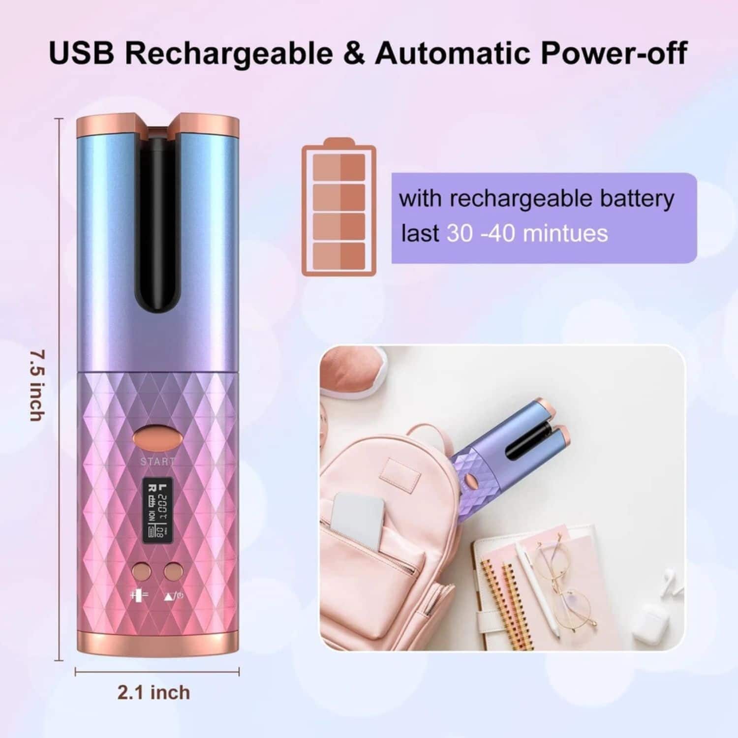It took a while to understand how it works, it started and then instantly stopped, didn't hold power and charge. Had to return unfortunately as it was hassle to start and its swirled for 1 sec and stopped and then again start, not what is expected for curling hair.