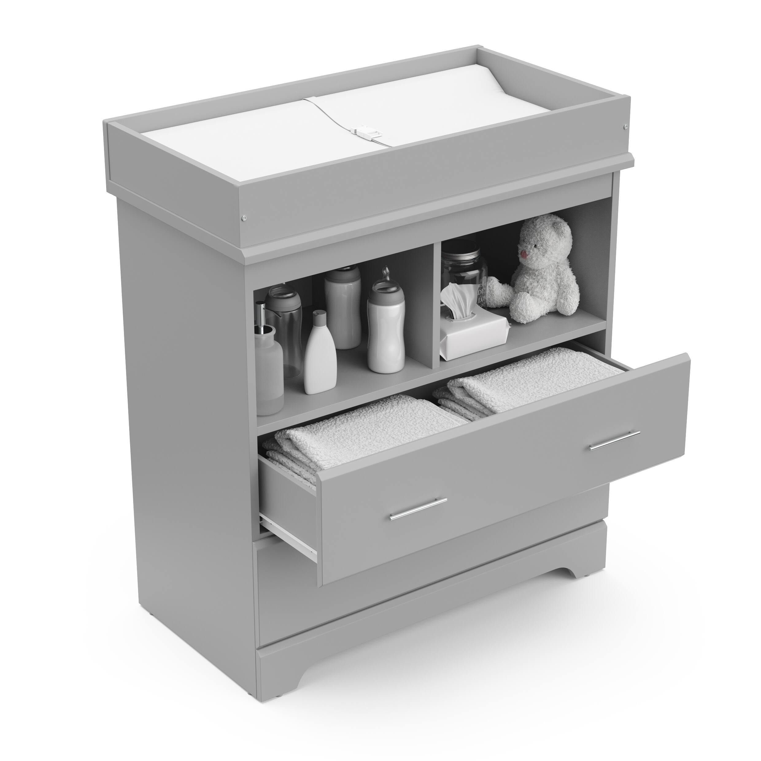 This baby changing table is of a good size. Lots of space to store all baby products that I have. Looks amazing in the baby room.