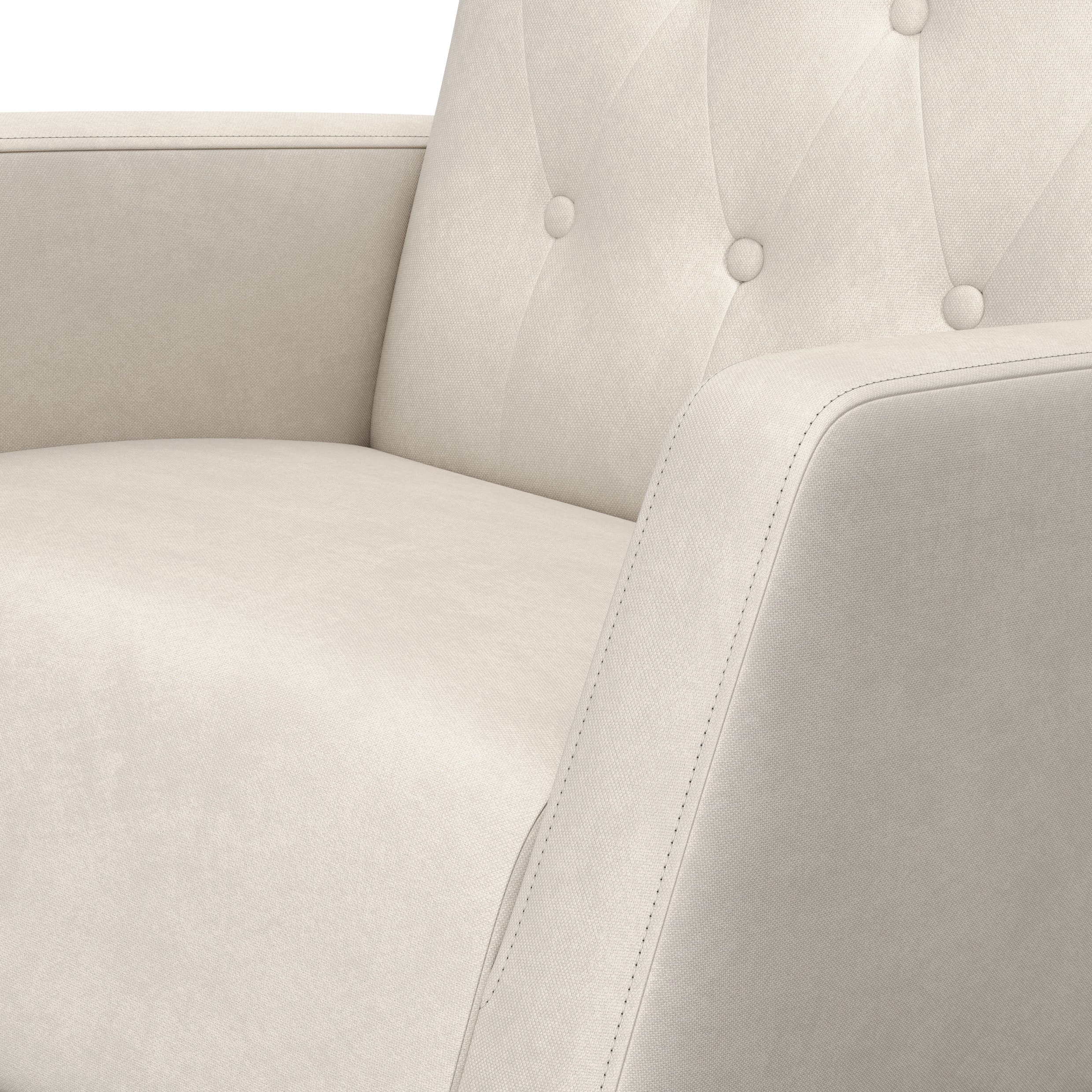 I am not completely satisfied with this product. It has bunched up on the seat a little bit. It also does not rock very fully or evenly. I don’t feel extremely relaxed in it as it is slightly smaller than I want it to be. Also, my cats have Taken to scratching it and it is not a fabric that works with cats. They love it.
