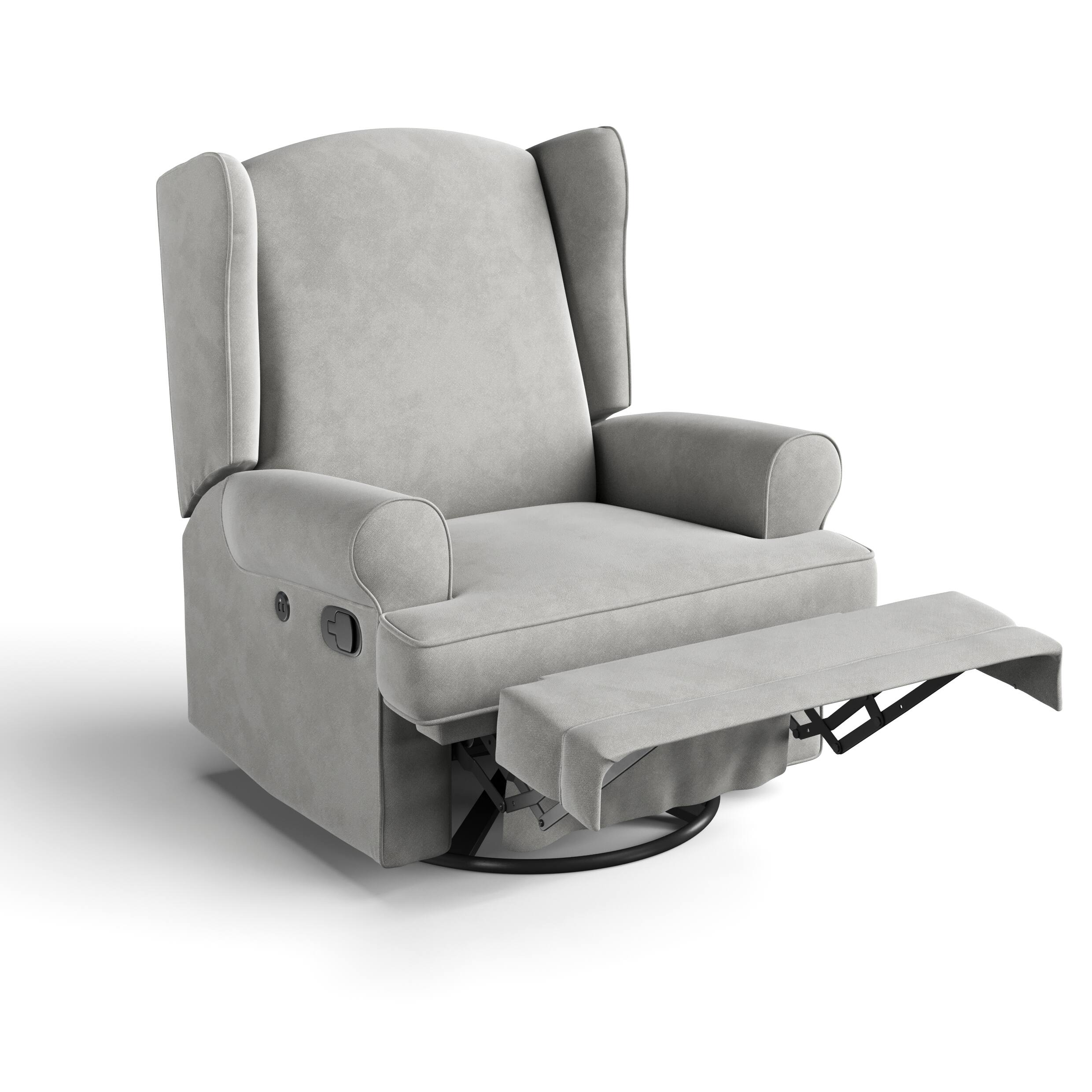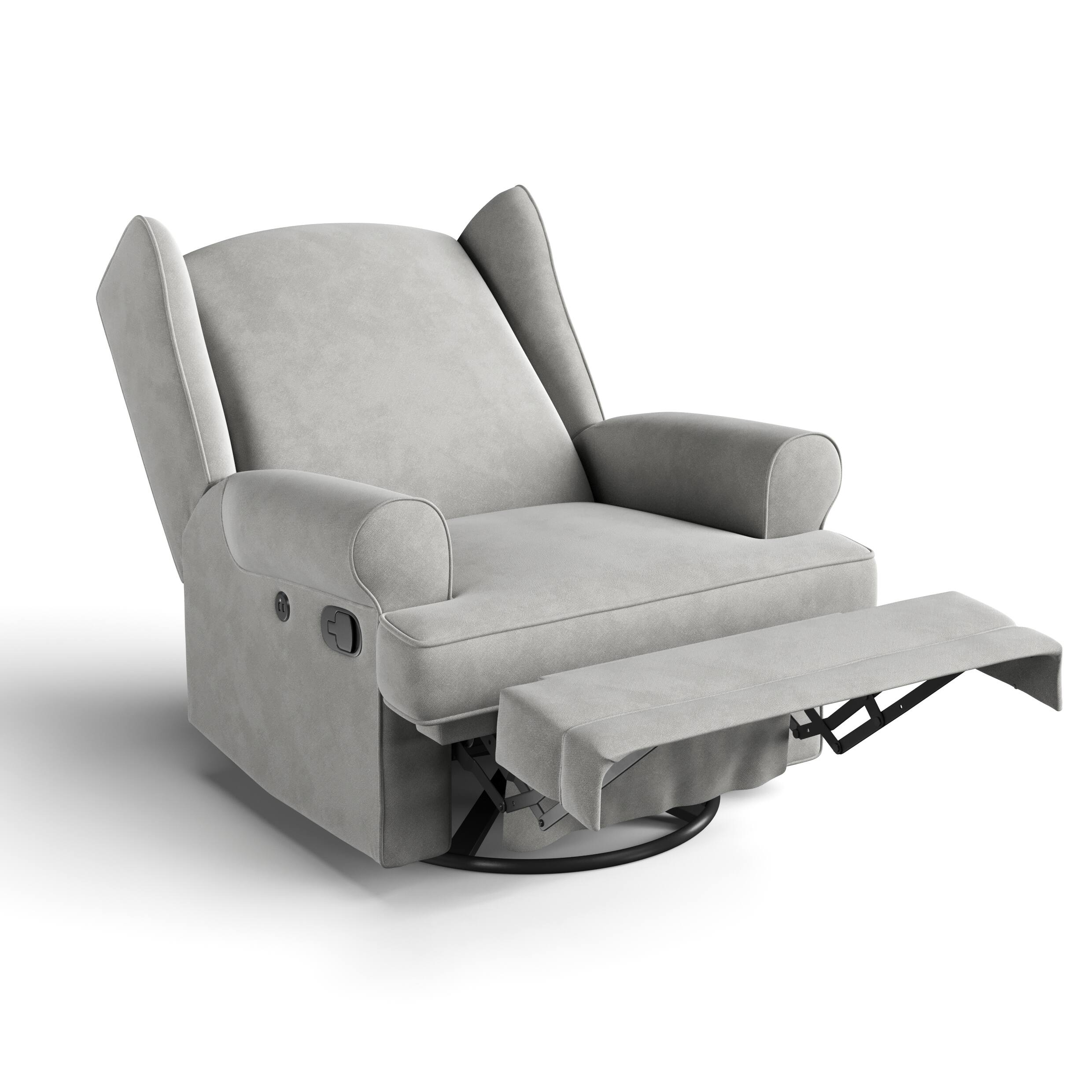 Customers are impressed with the Serenity Wingback Upholstered Recline Glider for its comfort. Customers say it is very comfortable and they love the color.