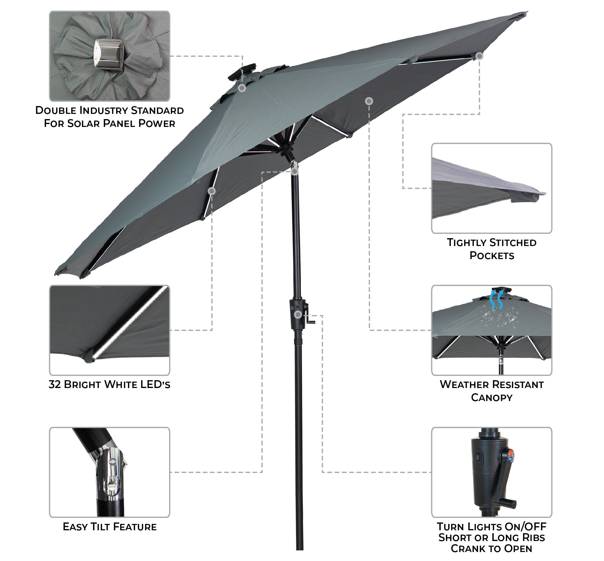 Sun Ray 9' Round Next Gen Solar Lighted Umbrella