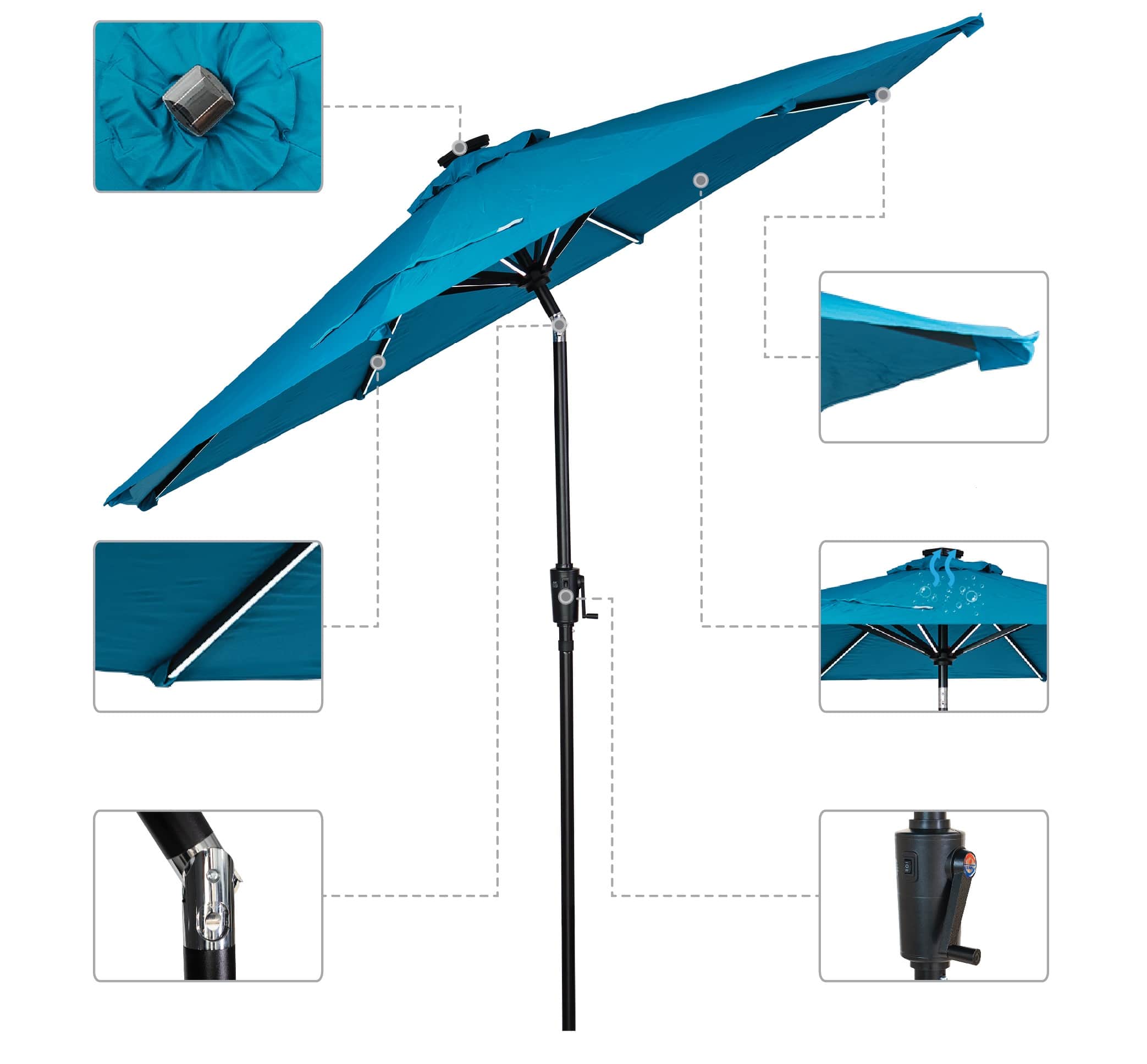 Sun Ray 9' Round Next Gen Solar Lighted Umbrella