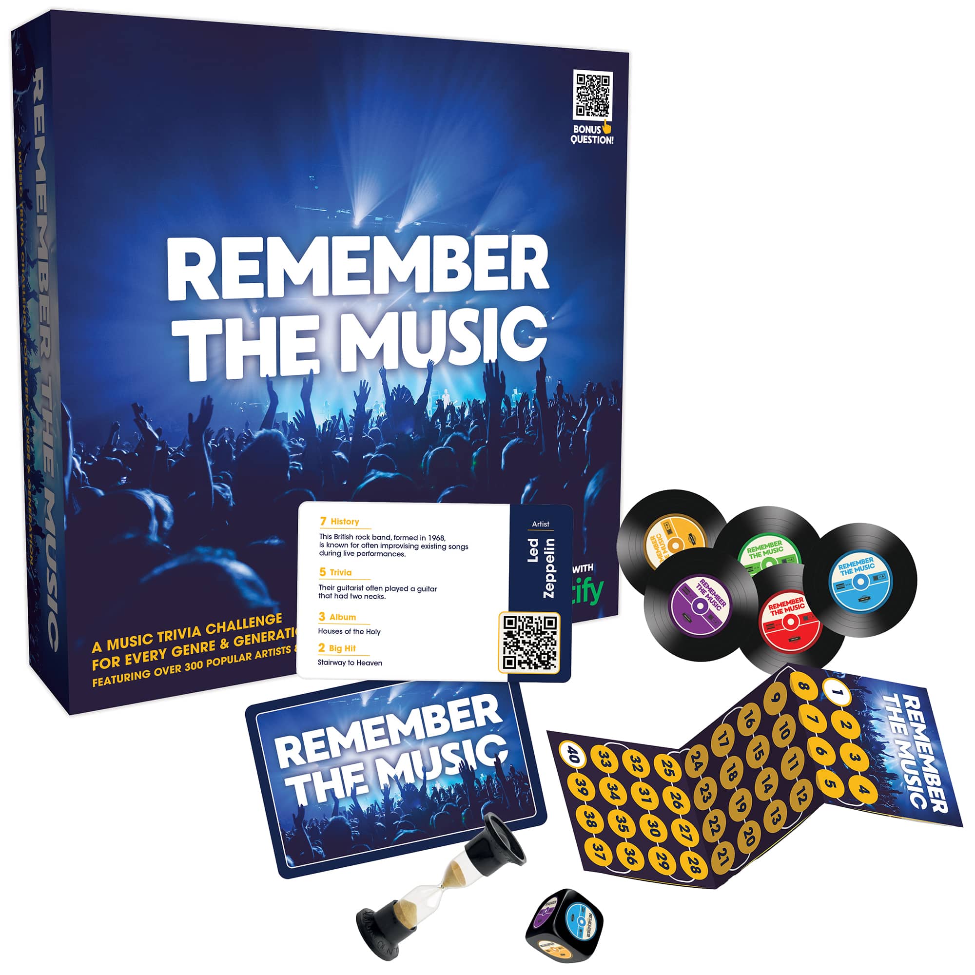 Had a lot of fun playing "Remember The Music" with my family and again with friends at a game night. The older we are the more we need the 4th clue. My son in law who is a drummer in a band went to the top of the charts well before any others. If you listen to music often, you will love this game.