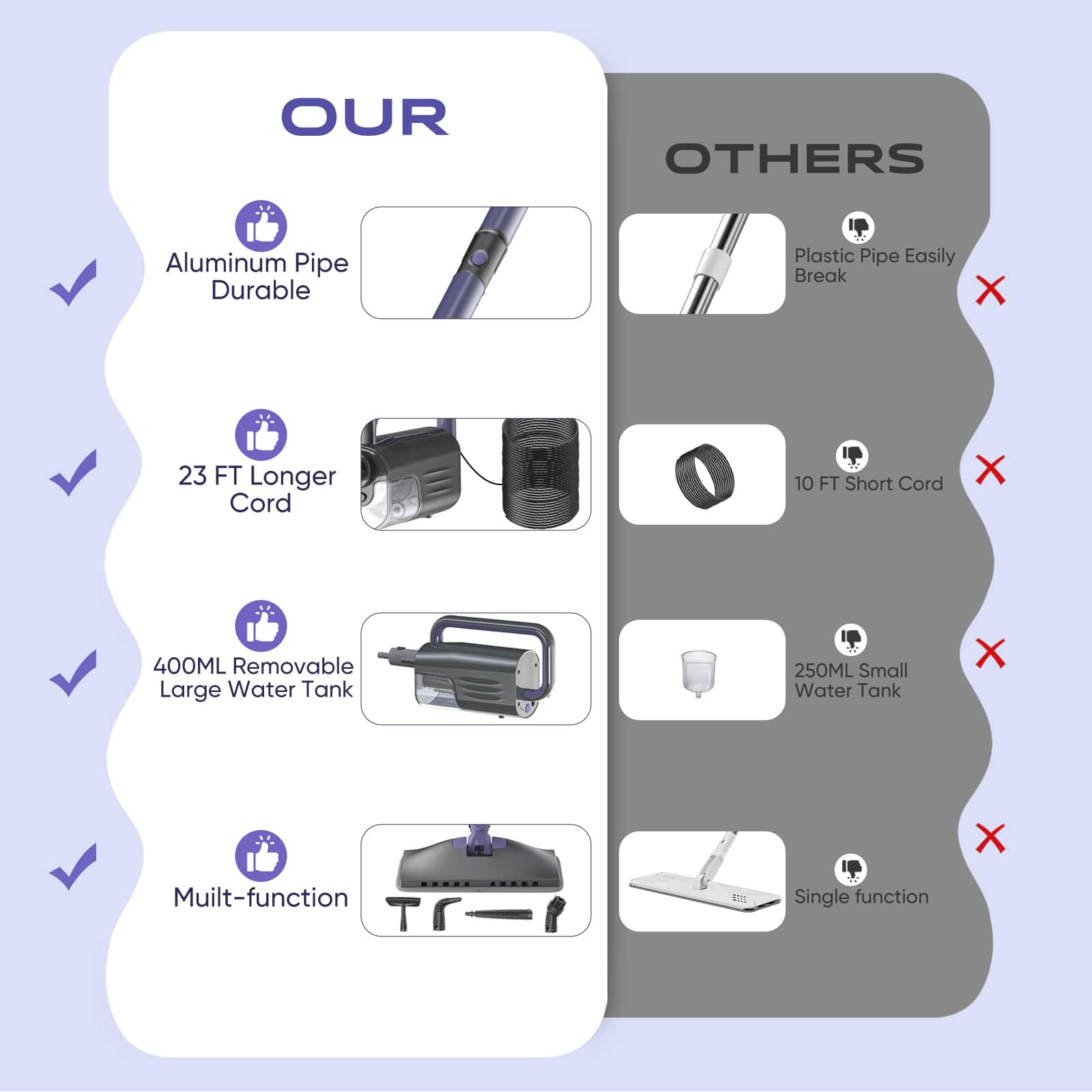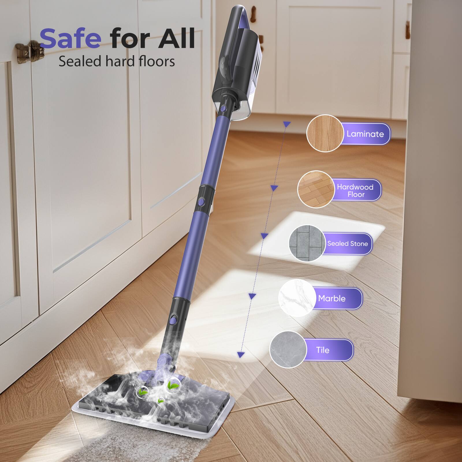 This steam mop is easy to use, heats quickly, and cleans floors well. The multiple attachments are handy for different surfaces. Lightweight, versatile, and makes house cleaning much faster and easier.