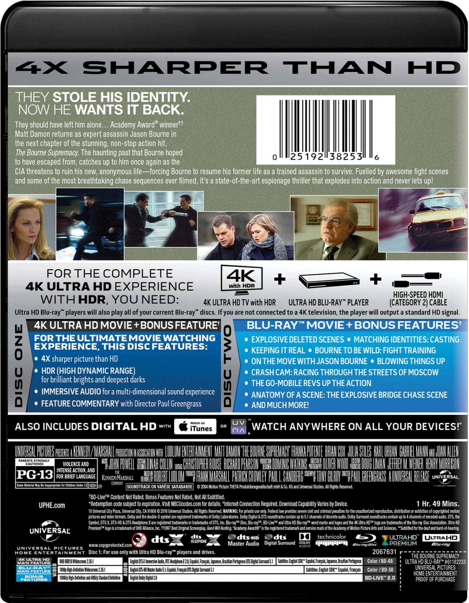 Being a big fan of the Bourne series, this was a must-buy for my new 4K collection. The movie itself is amazing and arguably the best in the series. I think anyone reading this obviously has seen the movie, but is wondering if the 4K HDR upgrade is worth it:
