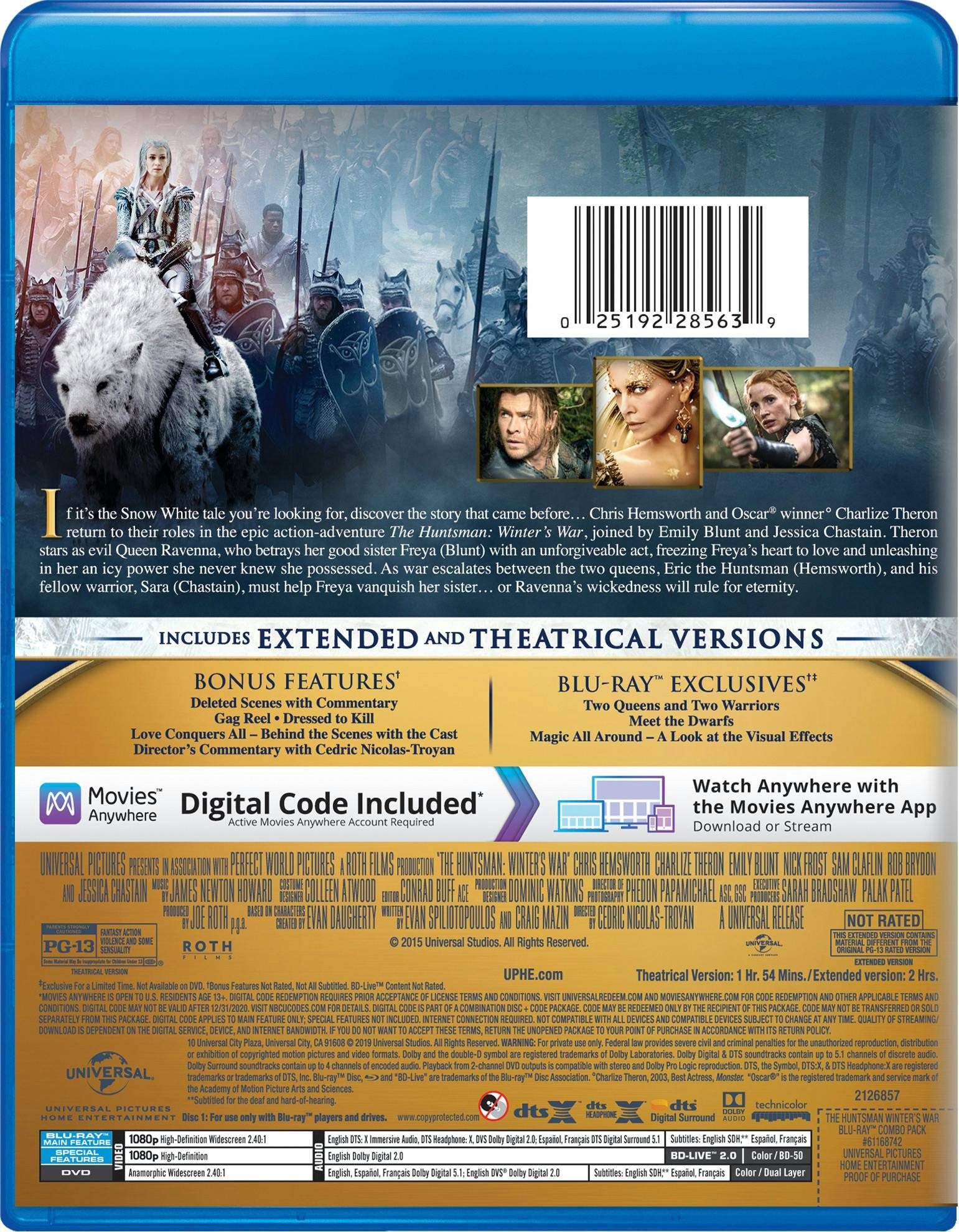 This review is from Huntsman: Winter's War [Only @ Best Buy] [SteelBook] [Digital HD] [Blu-ray/DVD] [2016]