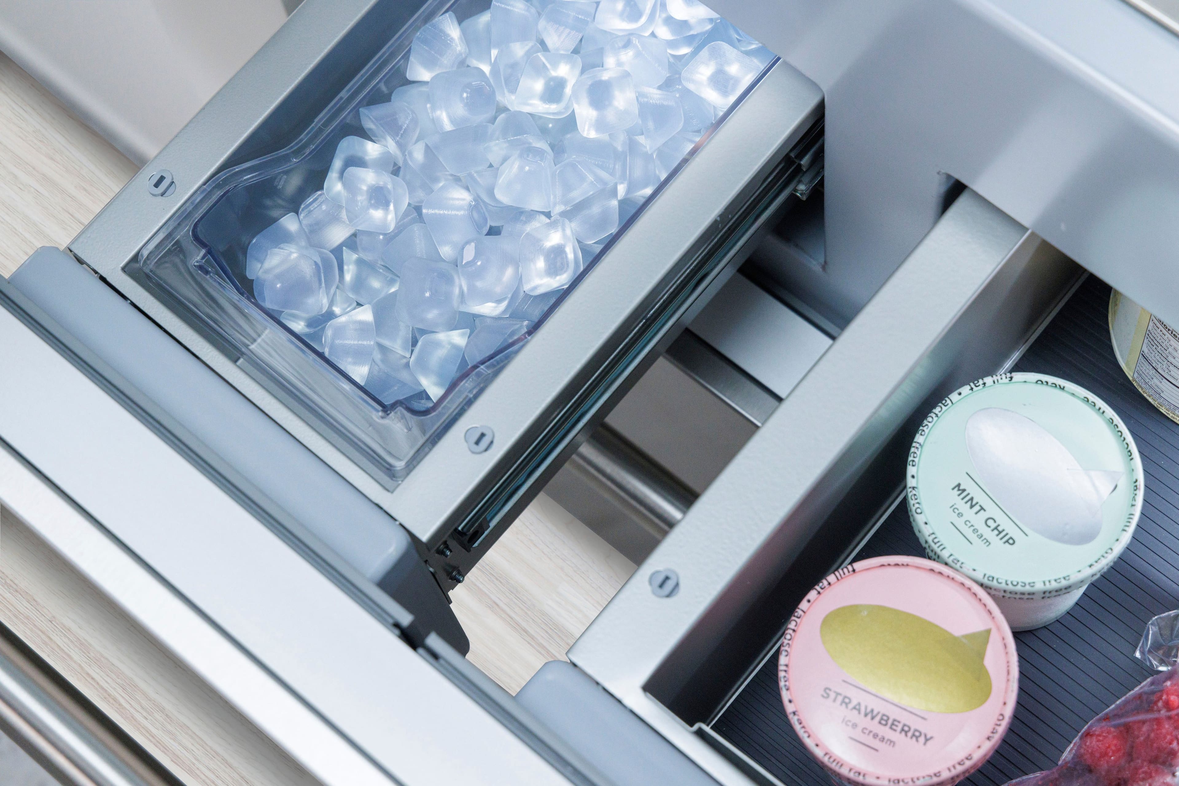 The refrigerator looks very nice but is not very practical. Ice tray does not hold a lot of ice and it takes a while to make ice.